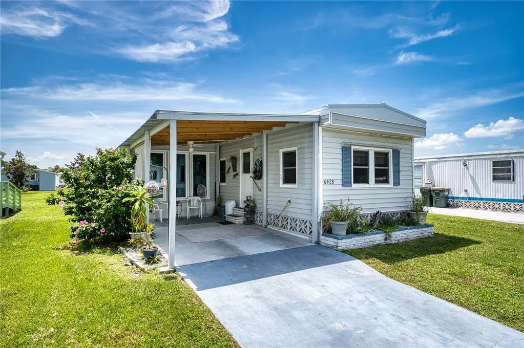 Welcome to your dream home in the desirable Holiday Park Community! This delightful mobile home offers 2 cozy bedrooms, 1 full bath, with greenbelt views in the back. Fully Furnished and Turn Key! Additional living area from the spacious Florida Room that was updated, with its own separate AC wall unit, adding an additional 120 sq ft of living area. The rest of the home is in fact on CENTRAL AIR/HEATING. Recently added, new carpeting along with new butcher block style kitchen countertops. The roof was redone in 2022 and the carport was also updated and reinforced. For added convenience, enjoy a stackable washer and dryer right at your fingertips in the bathroom. You will clearly see that it has home has been lovingly cared for. Holiday Park Community boasts a wealth of activities and facilities to keep you entertained like, 2 heated community pools, 2 laundry facilities, 3 tennis courts, 4 pickleball courts, 3 bocce ball courts, 14 shuffleboard courts, 6 horseshoe pits, 3 ping pong tables, Billiard room, Card room, Dart room, Fitness center, Library, Boat and RV parking, and more! Located in a prime area, you’ll have quick and easy access to all your shopping, entertainment, and travel needs, with the Charlotte Sports Park and I-75 nearby. Seller currently has a renter in place until April 2026 and receiving $1,100 monthly rent. Perfect for the buyer who isn't in a hurry and would like to be the owner to receive that monthly income!
