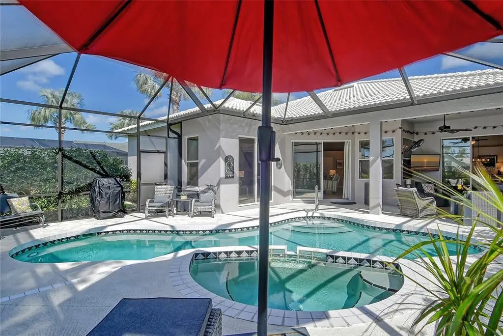 Tara Golf & Country Club. New listing now available for March/April 2025 and Season 2026 at $7,500/month with a 3-month minimum, with Full Golf & Social Membership Transfer. Also available for short term off-season rental 2025 at $4,000/month, or 6+ months. This beautifully updated 3 bedroom, 3 bath pool home, is Located on the golf course, it has a fabulous split open floor plan with a living room/dining room combination and sliding glass doors leading out to the lanai/pool area, spacious combined family room, and kitchen with quartz counters, stainless steel appliances, breakfast bar that seats 4 plus, and an additional breakfast seating area. Leading from the family room you will find the large master bedroom with a king-size bed, walk-in closet, sliders which open onto the pool area, en-suite bath with walk-in shower and separate jacuzzi tub, + 2 separate vanity sinks. The separate guest quarters, both with queen beds, and each has its own bathroom, one with tub/shower and one with walk-in shower. Step outside from the living room sliding glass doors to your private oasis, a covered relaxing seating area with mounted tv, grill, and ceiling fan, leading to the heated sparkling pool and spa, surrounded by lush landscaping. Relax and enjoy this tranquil oasis, with views of the golf course (12th hole) while soaking up the warm Florida sun! The home comes with Full Golf & Social membership to Tara Golf and Country Club where you can enjoy all the amenities, Golf, Tennis, Pickle Ball, Full Fitness Center, Bocce Ball courts, and an active Clubhouse that has daily events, fine dining and a grill room, a pro-shop, driving range, putting green and firepit, and so much more! This community is centrally located with easy access to I-75, shopping, dining, and a short drive to Sarasota/Bradenton International Airport, UTC Mall, the Ringling Museum, downtown Sarasota, and some of the most beautiful beaches in Southwestern Florida, including the world-renowned Siesta Key Beach with its crystal quartz powdery sand and turquoise blue waters of the Gulf of Mexico! Sorry, no pets allowed.