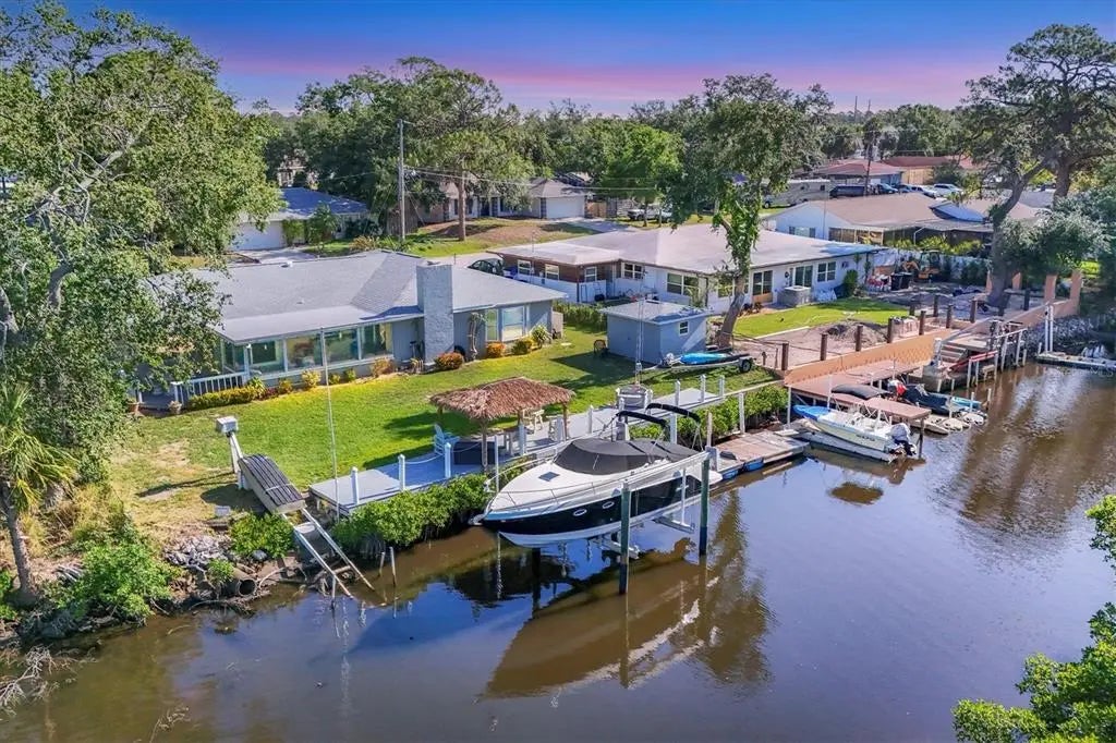 Boaters and water-lovers — this one’s for you! Welcome to your waterfront retreat on the beautiful Braden River! This charming 3-bedroom, 2-bath home is ideally positioned near the end of a quiet cul-de-sac with no HOA or CDD fees — offering privacy and freedom. A brand-new roof (2023) covers both the main house and the 10x10 detached workshop, perfect for hobbies, storage, or extra space. You’ll also enjoy peace of mind with clear polycarbonate hurricane shutters and the reassurance that this home has never experienced hurricane or flooding damage. Inside, the home boasts a desirable split-bedroom floor plan with updated wood-look tile flooring in the main living areas and plush carpeting in the bedrooms. The kitchen and bathrooms feature timeless classic oak cabinetry, blending functionality with charm. Step outside to your private backyard oasis where you can relax under your Tiki Hut with a brand-new thatched roof (2023) or head to your 59-foot TREX dock, complete with a private boat lift rated up to 13,000 lbs. Enjoy direct access to the Manatee River, with seamless navigation to the Intracoastal Waterway and Gulf of Mexico — making this home a true boater’s paradise. Located close to I-75, top shopping, dining, and everyday amenities, this property offers the ideal balance of peaceful waterfront living and modern convenience. Whether you’re searching for a full-time home or a weekend getaway, this unique property delivers the very best of Florida living. Bring your boat, your fishing poles, your tools — and your sense of adventure!