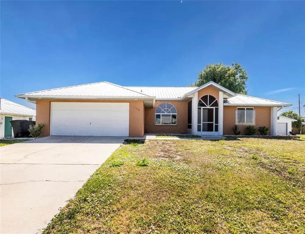 Move-In Ready! This stunning 3-bedroom, 2-bathroom block home is available now and is located in a NO FLOOD ZONE! Equipped with hurricane-rated doors and windows, this property offers peace of mind. As you step inside, you'll be welcomed by soaring 10-foot ceilings and an impressive 8-foot impact-resistant front door. The interior boasts luxurious tile flooring throughout, complemented by granite countertops and a stainless steel appliances with upgraded faucets. The bathrooms feature elegant fixtures and stylish tiling. The master bedroom is spacious, filled with natural light, and includes a well-appointed bathroom. Conveniently located near I-75 and a variety of local amenities, you’ll find easy access to beautiful beaches and daily entertainment. Enjoy nearby parks, state parks, tennis or pickleball courts, and exceptional golf courses. Don't miss your chance to view this property—it's perfect for making it your dream home or a solid investment!