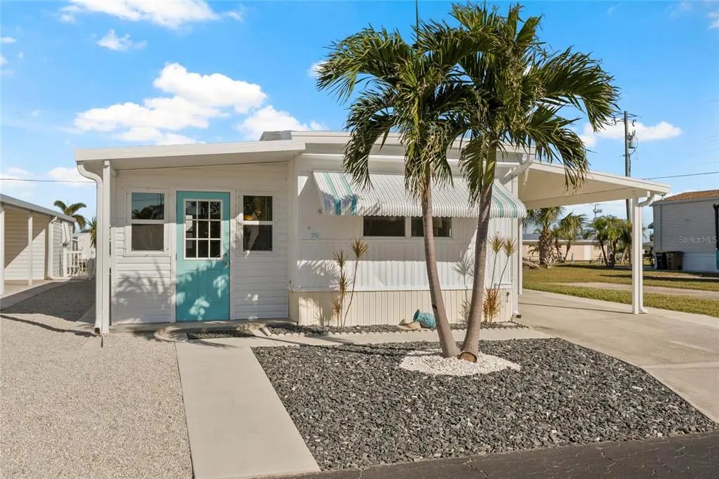 Price Improvement! WATERFRONT HOME! This is a great opportunity to own a fully furnished WATERFRONT home with a Dock, cozy single-wide in Resident Owned Parkhill Estates. This 2-bedroom, 1 bathroom home has 723 square feet of living space that has been completely remodeled with the following updates: two mini-splits for cooling and heating, new hot water heater, newly painted interior, new doors on all doors, laminate floors throughout, new windows and window treatments, bathroom shower, vanity, lighted/heated mirror, toilet, cabinet, new sewer drain for bathroom, kitchen to include microwave, stove with convection oven, sink faucet, ceiling fans, lights in kitchen, bathroom, living room, master, two large secure storage sheds one that houses the washer dryer and the second for all of your tools and toys. The kitchen has plenty of place for your kitchen essentials. Brand new bonus room that has a fully insulated roof and walls, dual pane windows, hurricane shutters and trimmed out in 3/8 ply bead and PVC. Updated landscaping which includes new landscape rock, pavers and an area that could be closed in as a lanai at the rear of the home. Dock on canal with Harbor access in back. Parkhill Estates is 55+ community that requires a 5 shares minimum buy-in to be bought at $1000 a piece. The more shares you buy the lower the HOA is. NO PETS are allowed on the property except for service animals, and NO LEASING OR RENTING of units permitted. Parkhill is conveniently located within a few miles from the Punta Gorda airport, major highways, downtown Punta Gorda which offers restaurants, shopping and waterfront activities. Now is the time to make this great furnished home yours! Punta Gorda was voted “#1 Best Small Place to Live” by Money Magazine and Forbes.