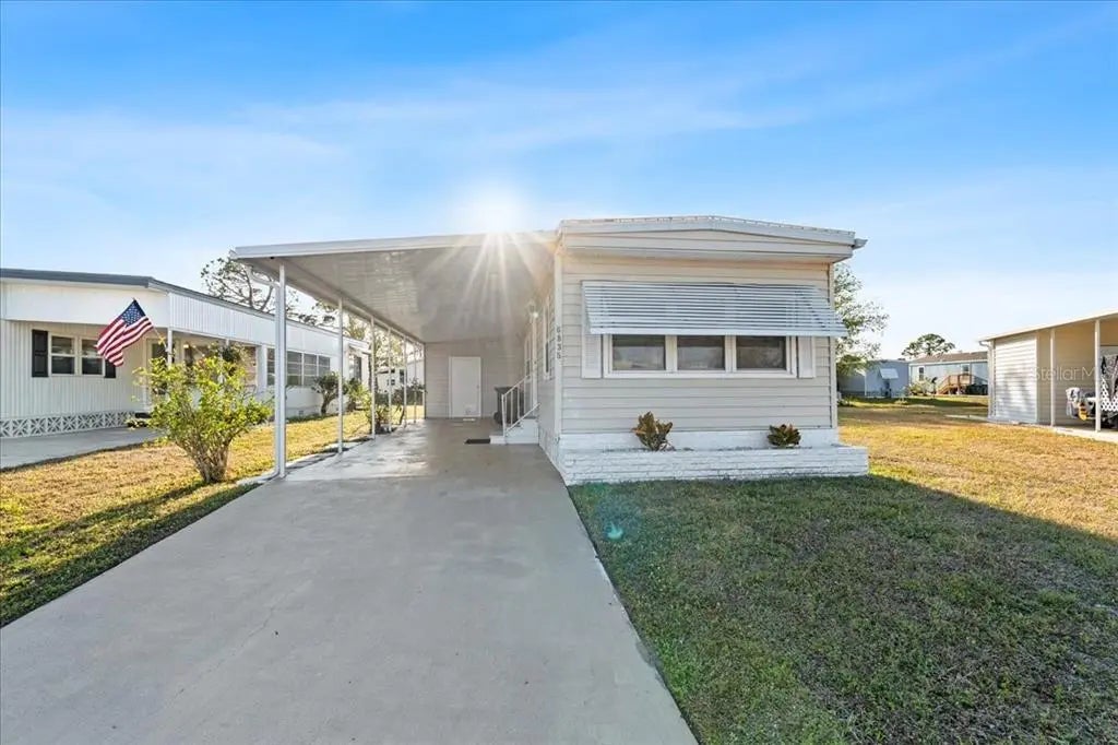 Welcome to your new home nestled in the vibrant and friendly 55+ community of Holiday Park. This 2-bedroom, 1-bathroom home features and NEW roof and beautiful LVP flooring throughout, offering a sleek, modern feel. The open-concept living, kitchen, and dining area provides an inviting atmosphere, perfect for entertaining or relaxing. The kitchen has been thoughtfully updated with stylish modern accents, and brand NEW appliances, making it both functional and visually appealing. Additional perks include a convenient storage/utility room, a long driveway with a carport for parking, and a well-maintained exterior. Whether you're looking for a seasonal retreat or a permanent residence, this home offers comfort and ease. Holiday Park provides unbeatable amenities, ensuring there's always something fun to do. The community boasts multiple Shuffleboard Courts, Horseshoe Pits, Pickleball Courts, Tennis Courts, Bocce Courts, and Ping Pong Tables. Two heated pools offer year-round enjoyment, while the Laundry Facility, Billiard Room, Fitness Center, and Card Rooms cater to your recreational and fitness needs. You'll also love the on-site Library, Ceramic Building with Kiln, and Dart Room. With weekly activities and events, there’s never a dull moment! This home's location offers access to every convenience! Enjoy nearby shopping, dining, and entertainment, as well as the beautiful beaches and nature parks of Southwest Florida. Come see why Holiday Park is the perfect place to enjoy your next chapter in life!