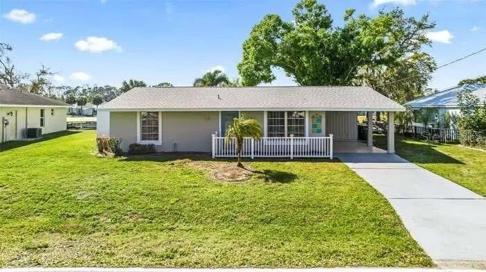 Rented for the months of Jan-March 2026. BEAUTIFUL WATERFRONT 2 Bedroom, 2 Bathroom, 1 Car Carport, Pool home with a PRIVATE Dock & Boatlift, 98 ft concrete sea wall, on a SALTWATER CANAL in Port Charlotte. HIGH & DRY, have peace of mind that this home has had no damage or flooding from past storms! NO HOA FEES, PER SELLER CURRENT LENDER DOES NOT REQUIRE FLOOD INSURANCE, FURNITURE & BOAT NEGOTIABLE! CLICK ON THE VIRTUAL TOUR LINK 1 FOR THE VIDEO AND VIRTUAL LINK 2 FOR THE 3D TOUR. Entertain friends and family in an open living and dining room with large windows and a glass slider for plenty of natural light & water-view dining. The kitchen offers ALL Stainless-steel appliances, ample counter space, a breakfast bar, and an adjacent laundry room with pantry space. The spacious master bedroom has DUAL closets, a glass slider to the lanai showcasing a SERENE canal view, and a private bathroom with a single sink vanity and walk-in shower. The guest bedroom is a fantastic size with a built-in closet and guest bathroom nearby. Extend your living and entertaining space to the large covered lanai where you can sip your morning coffee or unwind with your favorite evening beverage while enjoying the BREATHTAKING water views. Take a dip in the private heated pool or soak up the sun from the pool deck. Whether launching a kayak, paddle board, or boat, you can set sail for endless water adventures right from your backyard with a private 8x12 dock featuring a 6,500-lb boat lift. The spacious backyard has room for play, hobbies, or relaxing after a day on the water, and includes a shed for extra storage. MINUTES to US-41, Port Charlotte Beach Complex, local favorites such as Fishermen’s Village, Ponce De Leon Park, shopping & boutiques, fine & casual dining, and LIVE entertainment. Also just a short car ride to the Gulf Beaches of Boca Grande, Englewood, or Manasota Key to name a few where you will find world-class fishing and white sand between your toes. Schedule your showing TODAY!