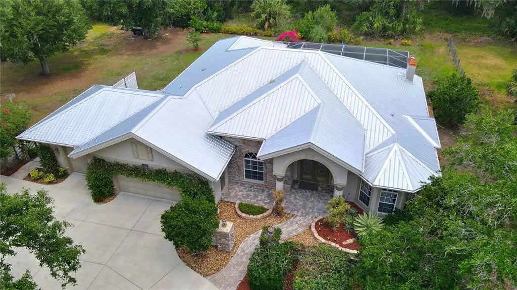 Under contract-accepting backup offers. **PLEASE ENJOY THE 3D INTERACTIVE WALK VIRTUAL TOUR ASSOCIATED WITH THIS LISTING! Welcome home to River Oaks! Constructed in 2005 by respected home builder Fero Homes, this three-bedroom, two-full-bath executive retreat is centrally located and is only a 20 minute drive from Punta Gorda, Port Charlotte and Arcadia. Situated in SW DeSoto County on approximately one acre of canopied oak tree land (TWO FULL LOTS) in what could easily be described as a tropical park-like setting, this home’s backyard is an oasis unto itself. With just over 2220 square feet of air-conditioned living space, the spacious great room plan enjoys numerous quality features, including a wonderful a flag-stone entryway, disappearing corner glass sliding walls, tray ceilings in both the great room and primary suite, ceramic tile flooring in all but the carpeted bedrooms, built-in shelving and a gas fireplace in the great room. The enviable kitchen has ample hardwood cabinetry and granite counter space, a breakfast bar, a huge dinette area, newer stainless appliances, an adjacent formal dining space and a custom built-in wet bar with a wine refrigerator and wooden display cabinetry. Accessed from the great room, kitchen area, primary bedroom and guest room, this nearly ~1,200-square-foot private screened enclosure, ~300 feet of which is under roof, has paver-stone decking, a large Koi pond and a second gas fireplace! It's an ideal space to enjoy the serenity of rural, yet convenient Florida living. The home has a sizable primary ensuite bedroom with a custom walk-through closet that connects directly to the laundry room and a day desk. The bath has dual sinks, a large jetted tub and a separate walk-in shower. There is also a three-car attached garage with vast storage capacity. The third stall, which is divided from the rest, is air conditioned and makes a perfect workroom with both front-facing and rear-facing overhead doors. In addition, this residence is equipped with window storm protection, a 50-gallon propane tank, a circular driveway, irrigation, an in-wall pest system, a Bose surround sound/intercom, three skylights, a 240V RV/Car power station outside of the shop wall and a finished dry-walled attic space. The home is located in a low-risk flood zone which does not require flood insurance if you have a mortgage. Clearly, no expense was spared! The community of River Oaks enjoys a county boat launch, fishing pier and pavilion and is directly on the pristine Peace River! You're going to love this home! Walk through now by clicking on the attached 3D virtual tour!