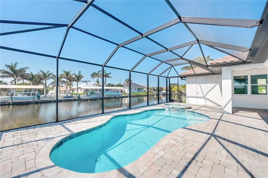 OFFERING up to 15K BUYER CREDIT toward CLOSING COSTS or rate buy-down! OFFERING PEACE OF MIND with a 6- YEAR CHOICE HOME WARRANTY at NO ADDITIONAL COSTS! BRAND NEW, never lived in 3-bedroom, 3-bath, 3-car garage custom POOL home in SOUTH GULF COVE with DIRECT SAILBOAT ACCESS, NO BRIDGES- 7-minute boat ride to the lock and 15-minute boat ride to Charlotte Harbor! FROM YOUR COUCH TO THE HARBOR IN 15 MINUTES! BUILT IN 2022 and located on a prime canal-front lot with 80' of PRIVATE SEAWALL, this home offers luxury waterfront living at its finest. Hurricane ready with IMPACT WINDOWS and DOORS. The spacious SPLIT FLOOR plan features plank tile flooring throughout, soaring ceilings, and an open-concept design. The CHEF'S KITCHEN includes a gas burner cook top, pot filler, large island with built-in cabinetry, and high-end finishes. The OVERSIZED second and third bedrooms are ideal for guests, offering comfort and privacy. A pocket door separates these rooms from the main living area, creating a private guest wing. The third bedroom also features direct access to the pool bath, making it perfect for outdoor entertaining and extended stays. The primary suite offers serene canal views, dual walk-in closets, a spa-style bath with soaking tub, and a large walk-in shower. Step outside to the expansive covered lanai — perfect for entertaining — featuring a HEATED SALTWATER pool with integrated SPA, outdoor kitchen, and southern exposure for all-day sun. The garage includes epoxy floors, and the home is nestled in a quiet neighborhood, ideal for relaxation and boating. This is a rare opportunity to own a move-in-ready waterfront home with Gulf access and luxury upgrades throughout. Call today to schedule your private showing.
