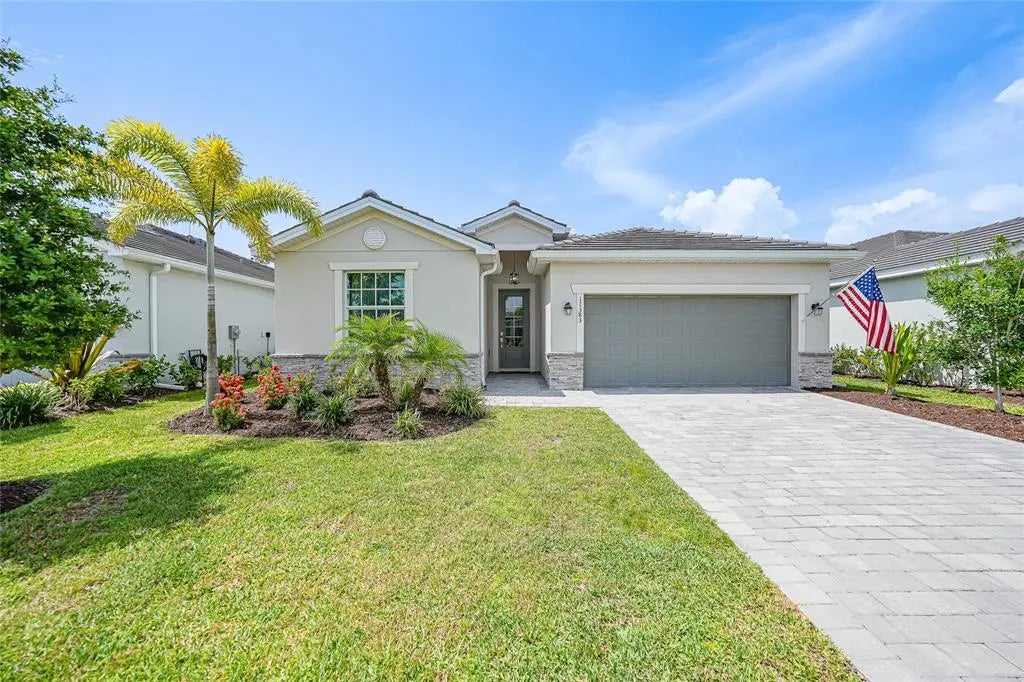 Experience the best of modern Florida living at 11383 Burgundy Drive, a beautifully concrete and stucco constructed 2023 home located in the heart of the vibrant Wellen Park community. This meticulously designed 4-bedroom, 3-bath residence offers 2,035 square feet of thoughtfully crafted living space, all on one level—ideal for families, retirees, or anyone seeking a comfortable, open-concept lifestyle. The smart split-bedroom floorplan ensures privacy for guests or multigenerational living, while soaring ceilings and ceramic tile flooring throughout create an airy, modern feel. The chef-inspired eat-in kitchen is a true centerpiece, featuring a large island, stone countertops, upgraded cabinetry, walk-in pantry, and stainless-steel appliances. Step outside into your private retreat: an extended, fully enclosed screened-in lanai with a brand-new 6-person spa and tranquil pond views, perfect for relaxing evenings or entertaining under the stars. The fenced-in backyard offers both privacy and space for pets or play, with ample room to add a custom pool or outdoor kitchen if desired. Enjoy year-round comfort and peace of mind with hurricane-impact windows and doors, smart-home technology, energy-efficient systems, and an epoxy-finished two-car garage. Sliding glass doors connect indoor and outdoor living spaces seamlessly, enhancing the home’s easy flow. Situated on a beautifully landscaped lot in a quiet, gated, and deed-restricted community, this home also benefits from low-maintenance living with an HOA that includes lawn care, cable, internet, and irrigation. Wellen Park is known for its vibrant town center, boutique shopping, waterfront dining, outdoor concerts, and easy access to walking trails, conservation areas, parks, and beaches. You're just minutes from downtown Venice, the Gulf of Mexico, and major highways, with the Atlanta Braves Spring Training stadium right around the corner. Turnkey and move-in ready, 11383 Burgundy Drive offers the perfect blend of modern upgrades, flexible living, and the best of the Florida lifestyle. **The owners have made upgrades to home. A water filter treatment throughout home. Owners have added footage on to enclosed lanai, and patio with a 6/ person spa installation. Installed a rod iron fence in back yard. All new lighting of chandeliers all Through home. Installed a sealed floor in the 2-car garage. Owners will also Leave all décor window treatments in home. Also, all patio furniture and TV will stay with home. **