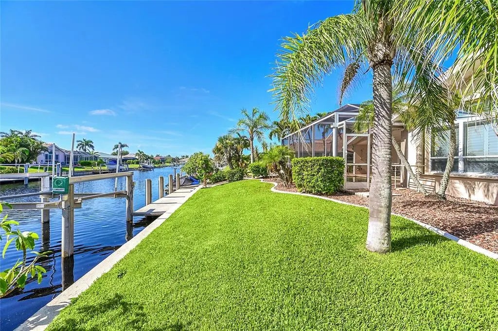 PRICED TO SELL!! THIS WATERFRONT, POOL HOME IN PUNTA GORDA ISLES IS A SHORT WALK TO FISHERMANS VILLAGE! Great location and had no flooding! This beautifully updated 3 Bedroom, 2 ½ Bath with an Open Floorplan offers a light, airy and welcoming atmosphere. The stunning Gourmet Kitchen, remodeled in 2023, offers light Granite countertops with the matching Granite backsplash, pot filler, wood soft-close cabinets, upscale appliances including the Bosch stainless steel refrigerator (2023), Bosch dishwasher, and a professional Koolmore stainless steel convection electric oven with a five burner-ceramic glass cooktop (2023). The large granite island accommodates seating and includes a built-in stainless steel wine cooler. A full home water purification system installed in 2023. The open floorplan provides a casual eating area near the kitchen which flows into the Great Room. The formal dining area is perfect for family dinners and holiday celebrations. For added convenience, the newly added half bath/laundry area is ideal for visitors while still allowing privacy for overnight guest areas. A separate living area has French doors that lead to the covered lanai allowing you to step out to your private lanai from the Kitchen, Great Room, or the Primary bedroom! Upscale, custom plantation shutters highlight luxury in this home with gleaming wood laminate floors flowing throughout the main living areas. New carpeting (2025) in the Primary Suite and a newly remodeled (2023) Primary En-suite Bathroom with Stone and Granite in the Roman shower, Granite countertops with double sinks. This home also offers two spacious guest bedrooms and a full bathroom which can be closed off for privacy by a pocket door. The new half bathroom with laundry and custom cabinet was added in 2023. Enjoy the gorgeous, heated pool and the separate free-standing hot tub surrounded by the paver brick deck and enclosed with a well-maintained pool cage. The home also offers a large dock and a boatlift with a 13,000 lb capacity, just 10 minutes to Charlotte Harbor and open water. It's conveniently located only 3 short blocks to Fishermans Village and the popular dog park, as well as a short distance to St. Andrews Golf Course, Pickleball at Gilchrist Park and other parks. Enjoy easy access to I-75, historic downtown Punta Gorda, restaurants, shopping, boating, and a short trip to gorgeous beaches. Don’t miss this opportunity to own this well-maintained, updated coastal home in the perfect location in Southwest Florida!