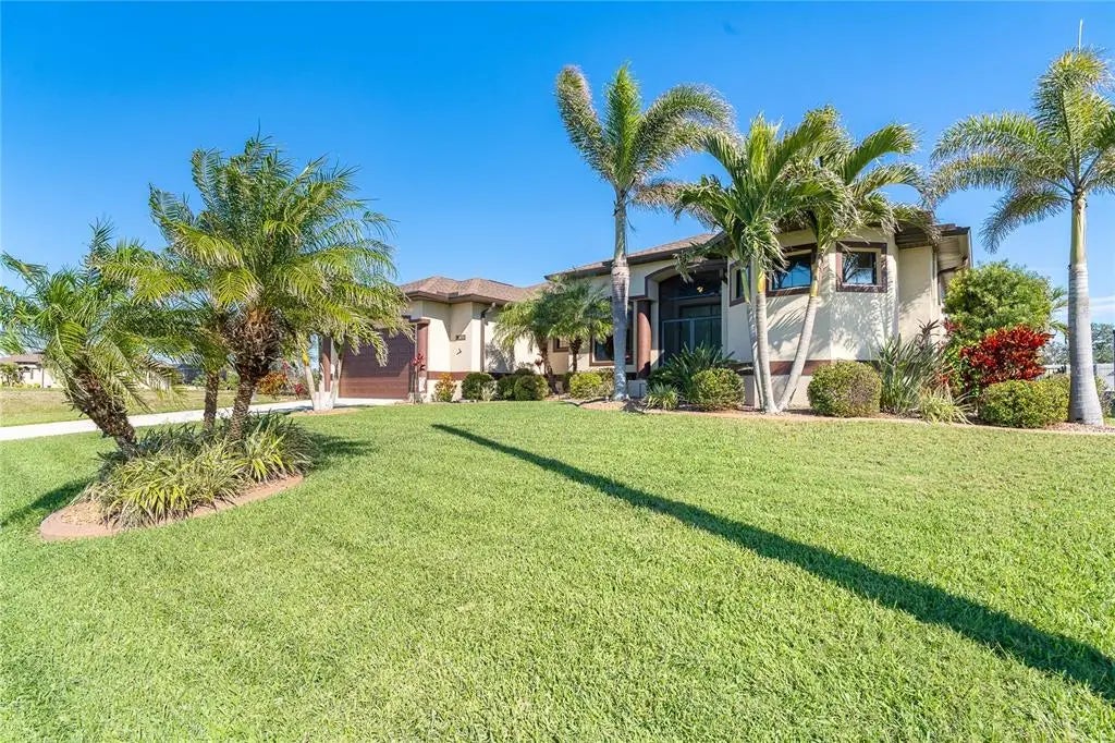 Under contract-accepting backup offers. One or more photo(s) has been virtually staged. This stunning home, built by Vantage Homes, offers a perfect blend of elegance, functionality, and modern convenience. Surrounded by meticulously maintained landscaping with CONCRETE CURBING, stone beds, and landscape lighting, the property also features an efficient in-ground IRRIGATION system that draws water from the canal. Recent upgrades include NEW ROOF, SOFFITS, and GUTTERS in 2023, as well as a NEW POOL PUMP. Outdoor living is enhanced with a paver lanai, SALTWATER POOL WITH HEATER, color-changing pool cage lights, and a spacious patio. The DOCK, equipped with lighting, complements the fenced backyard for added privacy. Inside, luxury abounds with granite countertops, crown molding, tray ceilings, 5 ½-inch baseboards, INSULATED INTERIOR WALLS, and 8-FOOT INTERIOR DOORS. The home boasts 12x24 tile in main areas, luxury vinyl flooring in bedrooms, and modern appliances, including a refrigerator, washer/dryer, and stand-up freezer. Additional conveniences include a screened front porch, EV outlet, generator outlet with panel interlock, water softener, whole-house vacuum system, and surge protection on all electrical panels. This home truly has it all!