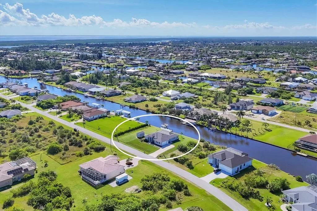 Double Waterfront Lot with 160ft of Seawall, 40ft Composite Dock, 10,000lb Boat Lift, Shed, Heated Pool, Impact Windows/Electric Roll Down Shutters, Custom-Built, and Fully Furnished! Welcome to your dream retreat in the sought-after waterfront community of South Gulf Cove! This fully furnished 3-bedroom + office, 2.5-bathroom home sits on a rare DOUBLE LOT combining elegance, comfort, and functionality. From the moment you arrive, you’re welcomed by lush landscaping and fresh sod that beautifully frame the impressive 160-foot property frontage. Step through the front door and be greeted by vaulted ceilings, expansive 9-foot sliding glass doors, and an open living space featuring a cozy fireplace, all set against serene waterfront views. The chef’s kitchen is designed for both beauty and function, offering stone counters, custom soft-close cabinetry, stainless steel appliances, a large island with double-ended cabinetry, and a walk-in pantry. The dining room overlooks grand picture windows and opens seamlessly to the pool area through sliders, making entertaining effortless. The split floor plan ensures privacy for all. The primary suite is a peaceful retreat, featuring a large window overlooking the water, private sliders to the pool, and a spa-like bath with a stunning-tiled walk-in shower, dual vanities, and a spacious walk-in closet. Two additional bedrooms are filled with natural light and share a well-appointed guest bath. A dedicated office, finished laundry room, and oversized garage add convenience to everyday living. Outside, you’ll find a true Florida paradise. The pavered pool deck features a sparkling heated pool with a sun shelf and umbrella stand, a fountain, and ample space for lounging or entertaining. A poolside half bath makes outdoor living even easier. The secondary lot features a spotless 12x16 shed with a ramp, while a private sidewalk leads to the 8x40 dock, complete with water, electric, and a 10,000-pound boat lift. This setup is ideal for enjoying miles of canals with quick access to Charlotte Harbor, the Gulf of Mexico, and beyond. Located just minutes from sidewalks, a park, and beautiful walking paths, this home is within easy reach of world-class fishing, stunning beaches, pristine golf courses, shopping, and dining. Whether as a primary residence, seasonal escape, or turn-key investment, this waterfront home is the perfect blend of luxury and lifestyle.