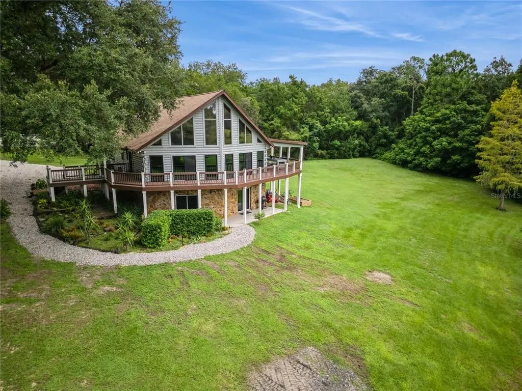 Near the Ocala forest for hunting, fishing and awesome horseback riding! Stunning custom built 3 story log cabin with wrap around decks sitting on 3 acres with scenic waterfront view. Beautifully done with all the amenities! 4800 heated sq ft with 4 bedrooms, 3 full baths. Multiple Zoned heating and cooling system with 2 units. The flooring is a mix of ceramic tile and gorgeous bamboo wood. Thermal Anderson windows, and recessed lighting everywhere. Main floor has 2 bedrooms, bath with laundry, great room, and custom built island. Access to the wrap around deck is accessible through BRAND NEW custom sliding doors off the great room. Kitchen is equipped with wood cabinets with self closing drawers, gas cooktop, dual electric ovens, under the counter lighting and more. The 700 sq ft Master suite with loft is on the 3rd floor overlooking the stunning main floor and has a bathroom with a large walk-in shower, whirlpool tub, two sinks and skylight. The walk out basement has a great room, kitchenette, full bath and large bedroom. Let your imagination run wild with the 2 huge bonus rooms down there! Could be an in-law suite, rental income, hunting/fishing lodge or just space for your large family activities!