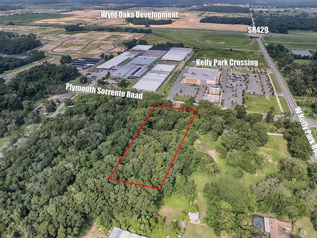 PRIME DEVELOPMENT OPPORTUNITY: 2.58+/- ACRES WITH MIXED-USE ZONING OPTION IN THE "VILLAGE CENTER" DISTRICT OF THE KELLY PARK INTERCHANGE(KPI), APOPKA, FL 32712. Located at Kelly Park & Plymouth Sorrento Roads, this development parcel is contiguous to the new AdventHealth free-standing Emergency Room located on the corner and situated in the highly desirable East "Village Center" of the Kelly Park Interchange Mixed-Use Zoning District. With 165' of direct frontage on Plymouth Sorrento Road, this parcel is flat & level needing minimal site & clearing work, City Water/Electric/Internet/Phone at Site, Excellent Ingress/Egress, Daily Traffic of 20,700+ (AADT), Apopka, FL 32712 has high-income households ranking 26% above the average for Orange County. This property is also just 1/4 mile from the $1.2 billion development of Wyld Oaks currently underway that included 280,000 s/f of Retail & Outparcel space, 200,000 s/f of Office space, 70,000 s/f Restaurant space, Two Hotels, up to 4,000 Multifamily & Condominium residences, an Expansive Outdoor Entertainment Venue, as well as multiple green spaces. Permitted uses allowed under the MU-KPI include: Restaurants, Bars, Lounges, Taverns, Retail Sales & Service, Financial Institutions, Outpatient Care Facility, Medical/Dental/Research Clinics & Laboratories, Professional/ Medical/Business Offices & Studios, Hotels, Child Care Facilities, Fitness Centers & Gyms, Theatre’s (Movies & Plays), Arts and Performing Arts & Crafts Studios, Art Gallery/Museum & Other Cultural Facilities, Recreational Indoors (Bowling Alley, Billiards & similar uses), Parks & Recreational Facilities (Private), Animal Boarding, and Multi-Family Dwellings. Additional “Special Exception” permitted uses: Church or Parish Houses, Community Center/Civic Clubs, Nightclubs, Restaurants w/Drive-thru Facilities, Schools (Public & Private), Bed & Breakfast, Parking (Garage & Surface) and others. Contact the Listing Broker for more information or request the full Offering Memorandum that includes full property profile, highlights and details.