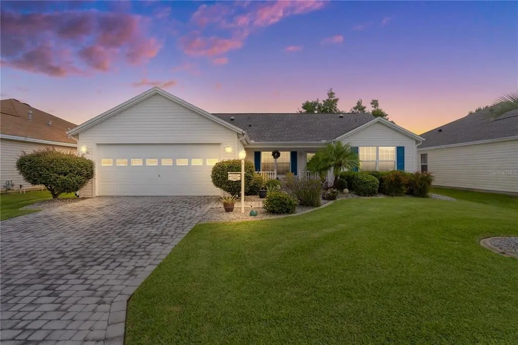 BACK ON MARKET due to Buyer financing falling through. *** NO BOND/ NEWER ROOF/ NEWER HVAC/NEWER Hot Water Heater/NEWLY PAINTED KITCHEN CABINETS*** Don’t miss this UNIQUE and METICULOUSLY maintained BANYAN/AMARILLO/BOUGAINVILLEA Model located in the highly desired VILLAGE of PIEDMONT with BEAUTIFUL curb appeal! Upon arrival you’ll see the wonderful PAVERED DRIVEWAY. You’ll love sitting on the cozy porch sipping a cold glass of iced tea watching the sunset. As you enter the first thing you notice is the OPEN CONCEPT. This split bedroom floorplan is unique with bedrooms 2 & 3 potentially being used as a IN-LAW SUITE with a DOUBLE POCKET DOOR entry. This home also has a BEAUTIFUL 17 x 15 FLORIDA ROOM with plenty of windows so the natural light illuminates the natural tones in the CUSTOM ceramic tile floor. The Kitchen has all Stainless Steel appliances including a gas range. Both guest bedrooms have carpet (replaced in 2016.) Guest bathroom has solar tube light. Spacious PRIMARY BEDROOM has a walk-in-closet, and en-suite bathroom with NEWER SHOWER GLASS DOORS. UPGRADES & FEATURES: * ROOF: July 2020 * AC unit: Nov 2022 * STAINLESS STEEL appliances and GRANITE COUNTERTOPS: 2019 * Gutters and Downspouts. *NEW garage door mechanisms Feb 2025. This home is just minutes from championship golf courses: Nancy Lopez Legacy and Glenview, as well as four Executive golf courses. Conveniently close to the Mulberry Regional Recreation Center, First Responders Recreation Center, and Calumet’s adult-only pool. Of course, in The Villages, you are close to shopping, restaurants, and squares with nightly live entertainment. The VA hospital and UF Health The Villages Hospital, are both less than a 10 minute drive away, as well as many surrounding medical offices. Both hospital facilities accessible via golf cart.