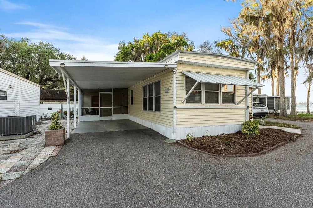 Under contract-accepting backup offers. No Lot Rent! Nestled in a serene 55+ co-op community, this home offers the ultimate lakeside lifestyle. Enjoy access to a boat ramp, protected boat slips, and a short canal that leads to the Harris chain of lakes, providing endless opportunities for boating, fishing, and kayaking. The property also includes s a dock directly on the Lake Eustis with picnic tables perfect for watching breathtaking sunsets. Step inside the cozy family room with scenic lake views, ideal for relaxing in your favorite chair. The great room is filled with natural light, thanks to numerous windows that brighten the space. For added convenience, there’s an attached shed off the screened patio. The Laundry is conveniently located off the bedroom. Whether you’re seeking peaceful moments to birdwatch or you prefer a little more action, the community clubhouse offers fun options, like pool, card games, or simply socializing with friendly neighbors. You’ll also find the Tavares waterfront entertainment district, shopping, and healthcare just a short drive away. Come experience the peace, serenity, and fun of this beautiful community — it’s the perfect place to call home!