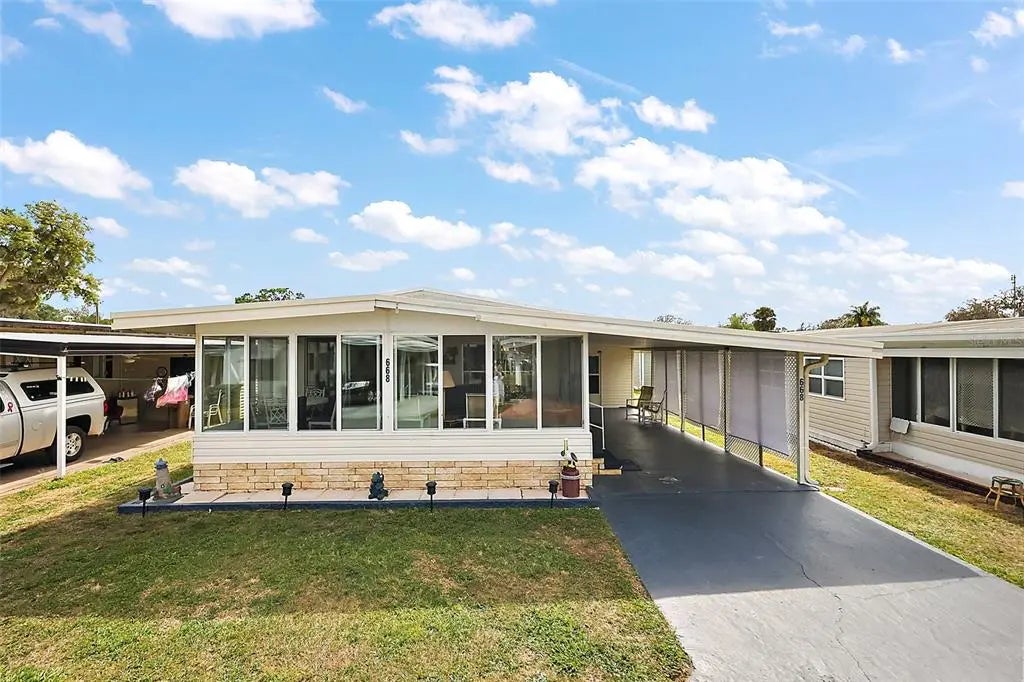 Welcome to Bonfire Mobile Home Park, a friendly 55+ community where comfort and an active lifestyle come together. Set on a peaceful dead-end street, this well-kept home features 2 bedrooms, 1.5 baths, and spacious living areas. Relax in the bright sunroom and wave to neighbors on their golf carts. Inside, enjoy an inviting living room, a dining area with built-in storage, and a cheerful kitchen with plenty of counter space, a window over the sink, and a newer microwave (2022). Recent updates include a new HVAC (2024), luxury vinyl plank flooring in main living areas and primary bedroom, and hot water tank (2020). Bonfire’s low monthly fee covers water, sewer, and access to a heated pool, clubhouse, billiard room, shuffleboard, and a calendar full of social activities. Boating and fishing enthusiasts will love the community’s location on Haynes Creek with access to the Harris Chain of Lakes and the St. Johns River. Pet-friendly and close to shopping, dining, and medical facilities, this home offers easy, low-maintenance Florida living. Schedule your showing today!