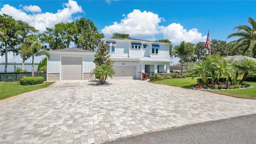 Owner financing is available! Don't miss your opportunity to make this jaw-dropping Harris Chain of Lakes Home yours! This exclusive, Key West-Style 6 Bed, 6 Bath Retreat is set on the shimmering shores of Little Lake Harris with direct access to the coveted Harris Chain of Lakes. This extraordinary and unique residence offers a one-of-a-kind blend of resort-style living and refined design. Featuring 6 bedrooms, 6 bathrooms, and 3,445 square feet of meticulously crafted space, this 2021 custom home is the ultimate lakefront sanctuary. The home is adorned with high-end finishes and exceptional details, including custom inlay shelving in every closet, emergency backup lighting throughout the entire home, and a hidden gun safe tucked into one of the bedrooms, to name a few. Five of the six bedrooms are en-suite, offering luxury and privacy for family or guests. The chef’s kitchen is a showpiece, featuring sleek 3cm Calcutta quartz countertops, top-of-the-line stainless appliances, and a large island that anchors the open-concept floor plan. Sunlight fills the main living spaces, complimented by a stylish cable-railed staircase that leads to the upper level and the entire home is Bluetooth-enabled, including the dock and balcony. Step outside to your private backyard paradise to a stunning, heated, saltwater pool with Aqualink smart controls, lighted waterfalls and fountains, and an outdoor shower. Step around the corner and you will find a fully equipped outdoor kitchen with a built-ins galore! There’s even a backyard putting green for all golf enthusiasts. As if this weren’t enough, this home also features a statement-making, climate controlled and plumbed RV garage; ideal for your boat or recreational vehicle. In addition, this space is equipped with shelving and benches, making it an ideal workshop for any project. The private dock is a water lover’s dream, complete with a durable metal roof, boat slip, two private jet ski docks, Wi-Fi connectivity, and an expansive deck perfect for sunset views. Don’t miss the opportunity to own this spectacular gem. Ask about the features list for full details. Book your showing today!