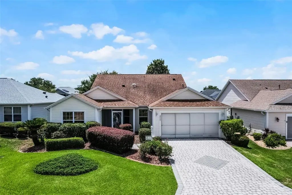 NO BOND a HOME WARRANTY and the GOLF CART is INCLUDED! The Village of Piedmont Hibiscus Model. This lovely 3-bedroom 2-bathroom home will charm you right away with curb appeal. A pristinely landscaped front yard and paver driveway lead you to a spacious and well cared-for interior just waiting for you to add your own personal touches. The foyer and large open living/dining area boast hardwood floors. The generous eat-in kitchen displays abundant counter space, cabinets and drawers as well as a pantry and a gas range. The living area leads to sliding glass doors which open to a sizable all-season lanai with floor to ceiling windows and an attractive view of a well-manicured back yard with lovely trees. What a great spot for morning coffee or visiting with guests, and a mini split unit guarantees comfort all year round. The ample master suite, which also has access to the lanai, has two separate closets as well as a large linen closet and dual vanities in the master bath. A convenient laundry room offers built-in cabinets and a laundry tub. Other amenities include: new roof in 2020, built-in storage cabinets in the garage, a solar tube in the kitchen and bathroom two, gas heat and a gas tankless water heater and new laminate floors in all of the bedrooms. This great home may be just what you’ve been searching for! Close to golf, recreation centers, pools, shopping and dining. Golf Cart is a Yamaha gas 2 seater with hard doors.