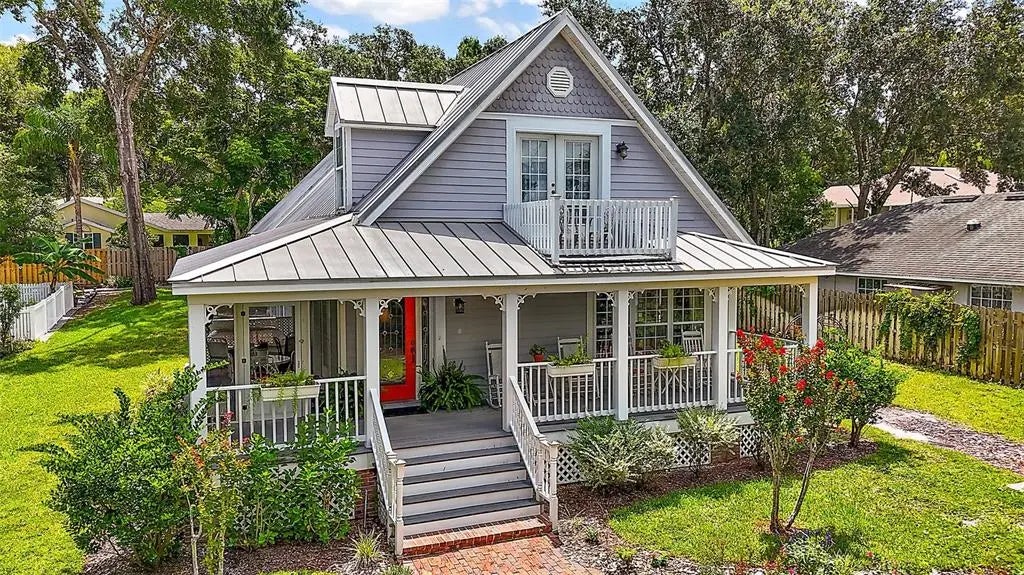 Nestled on a picturesque cobblestone street at the end of a private lane, 824 Michigan Street is a rare gem in the heart of downtown Mount Dora. Built in 2006, this storybook cottage is reminiscent of old-world charm and is part of the enchanting Mossy Oak Cottages—a quaint enclave of just four homes. With its timeless architecture and detached carriage house, this residence beautifully blends classic elegance with modern-day comfort.