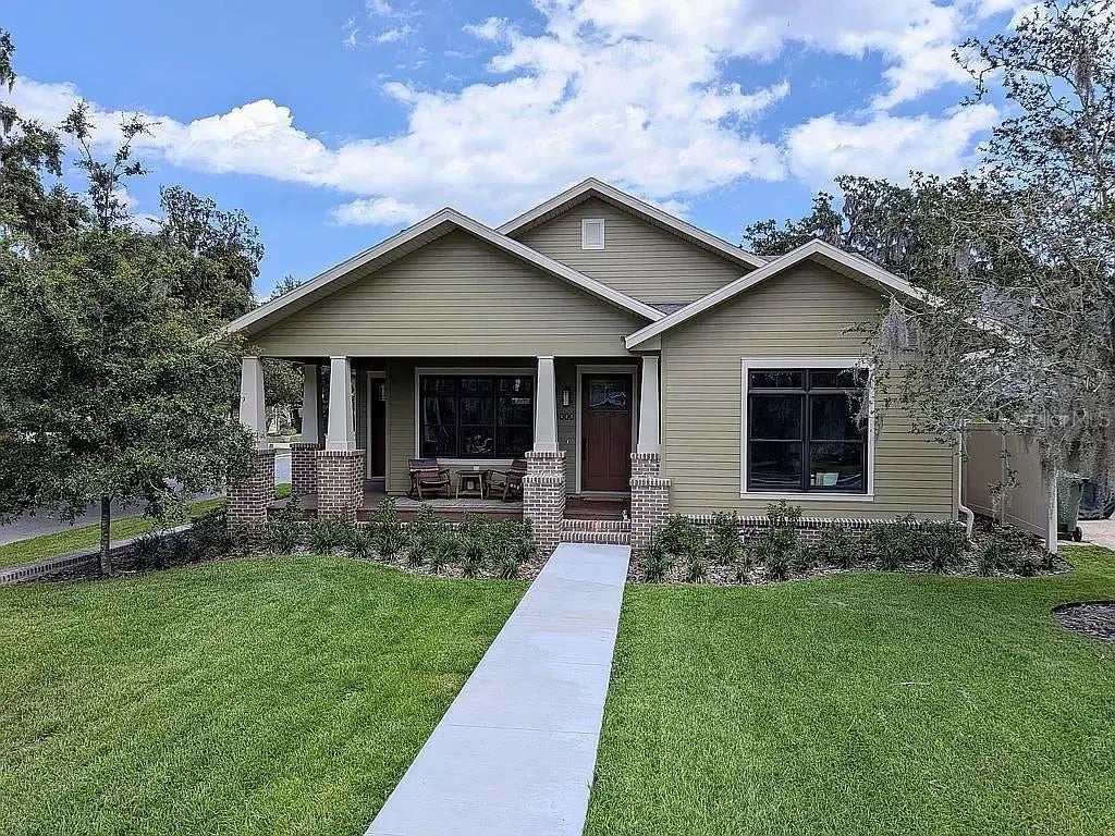 Welcome home to your completely custom house located in the heart of Leesburg's most historic and sought after neighborhood, Palmora Park. This home was built new 2024 and boasts a historic craftsman charm with all the modern finishes. The home sits high on the lot, surrounded by a hand laid brick wall, giving it a classical feel. The front and back porches will welcome your guests, while the open floor plan makes it easy to entertain them. Discover hardwood floors throughout, with marble tiling and quartz counters in all the bathrooms. The inside is accented with solid red oak doors and trim, as well as stained glass and hand painted tiles. The oversized two car garage has extended ceilings for extra storage space and an attic. The Anderson windows are custom stained to match the floor and doors, and the custom cabinet layout provides plenty of room for cooking and entertaining. A gas-assisted wood burning fireplace provides the perfect setting for parties, especially around the holidays. A gas 5 burner range and under counter microwave drawer provide all the tools necessary for a perfect meal. Make this house your home in Palmora Park!