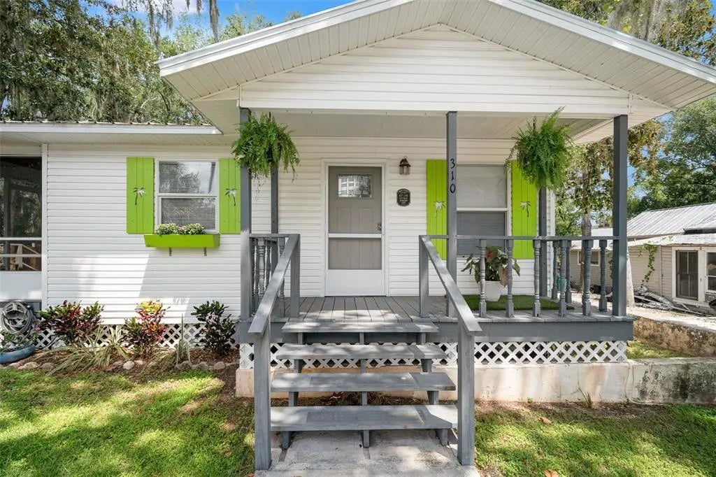 One or more photo(s) has been virtually staged. Welcome home to the "Key Lime Cottage" in historic downtown Inverness! This beautifully maintained two-bedroom, one-bath Key West-style cottage offers a delightful blend of coastal charm and small-town living. Enjoy lazy mornings on the shaded front porch, located minutes from historic downtown, bustling with inviting cafés, unique shops, and the Depot District's Saturday morning market, as well as scenic parks and trails. This move-in ready home features heart of red pine construction and a lifetime metal roof. It also boasts a modern upgraded kitchen with newer appliances in an oversized space, an energy-efficient Lennox HVAC system currently under warranty, a new water heater, and stylish vinyl plank flooring. Outdoor enthusiasts will appreciate the opportunity to cycle the 46-mile Withlacoochee State Trail that runs through Inverness, explore Fort Cooper State Park, or enjoy Henderson Lake within the Tsala Apopka Chain of Lakes. The area’s proximity to natural springs, including Three Sisters Springs—where manatees gather in winter—makes this spot truly unique. In 2025, Inverness was recognized for its charm by finishing 3rd in USA Today’s Best Small Towns with populations under 25,000. This is more than a home—it’s a lifestyle. Don’t miss your chance to live island-style in the heart of Florida's small-town treasure. Close
