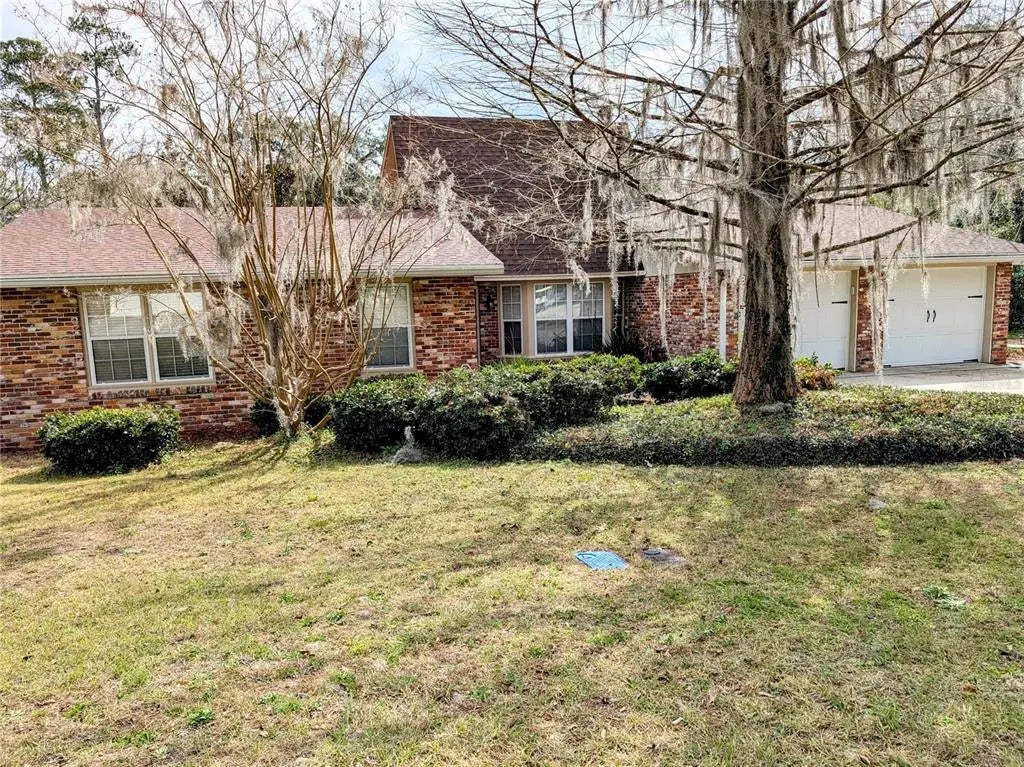 Under contract-accepting backup offers. PRICE REDUCED $20k FROM ORIGINAL LIST PRICE! MOTIVATED SELLER! Lake City Pool Home- Enjoy total privacy and a beautiful view from the tri-level pool deck of this attractive ranch-style brick home. Ideal for entertaining, the pool area is caged and includes a resessed outdoor kitchen complete with built-in grill, cooktop and sink. The view is of tall trees and sky only, offering a genuine retreat from the busy world. Appreciate the quiet setting afforded by a location well away from traffic sounds. The yard is nicely landscaped with shrubs and mature trees, including magnolia, cypress and palms. The kitchen overlooks the vaulted ceiling great room which features a gas fireplace set in native stone flanked on each side by floor-to-ceiling bookshelves and cabinetry. Glass French doors lead from the great room and the kitchen onto the pool deck. The front entry door leads to the formal dining room which has a bay window. The primary bedroom suite and hall bath and second bedroom are on the main floor. Upstairs from the great room is the third bedroom. In the kitchen area is a half bath and the laundry closet. The kitchen cabinets are solid wood, and there's a roomy walk-in pantry. The spacious two-car attached garage leads into the kitchen area. Attached to the garage on the west side is an equipment storage room, and in the back yard is a finished shed with a wall a/c unit. The downtown business district is one mile to the north. This home will be appreciated by those who want a sense of retreat to peace and quiet while being just minutes from the amenities and necessities of daily life.