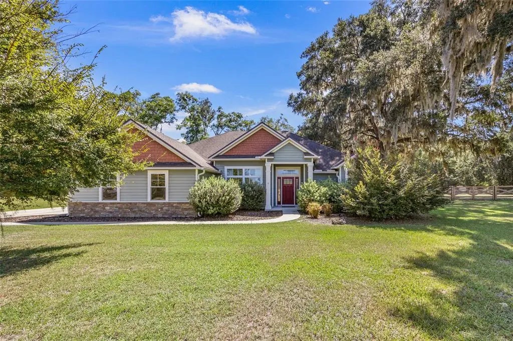 Under contract-accepting backup offers. Discover Country Living in this spacious 3-bedroom, 2-bathroom home on over an acre of open pastureland, framed by a peaceful wooded backdrop. Tucked away in the gated community of Cinnamon Hills, families will love the quiet streets, friendly neighbors, and community playground just steps away. Inside, the open-concept, split floor plan makes everyday life easy and enjoyable. The living areas are filled with natural light, high ceilings, and durable engineered hardwood floors—perfect for both playtime and gatherings. Bedrooms feature plush carpet for added comfort, and the thoughtful design provides privacy between the primary suite and the additional bedrooms. The primary bedroom is a true retreat, with a trey ceiling, walk-in closet, and a spacious bathroom featuring dual sinks, a garden tub, and a separate walk-in shower. A large laundry room with a folding table and laundry sink makes chores a little easier. Step outside to the recently screened back porch and enjoy a backyard built for memories. Roast marshmallows around the firepit, watch the kids play, or envision the sparkling pool you’ve always wanted—this spacious yard offers endless possibilities. All this, just minutes from downtown High Springs, Newberry, Alachua, Gainesville, and North Florida’s beautiful natural springs and rivers—perfect for weekend family adventures.