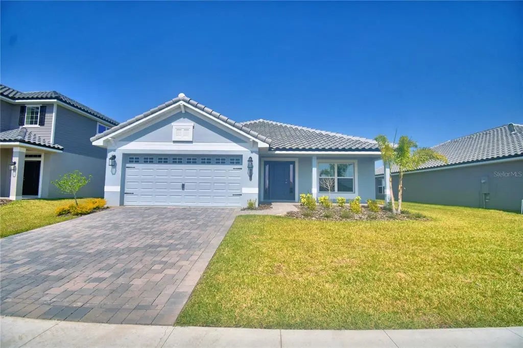 4.99 rate available. This 2200 Sq ft home has 4 bedrooms and 3 baths, 2 car garage, lots of entertaining space and luxurious details throughout! Upon entering you will enjoy the open concept great room/dining room/kitchen with 10’ ceilings, wood look plank tile in main areas, granite countertops throughout, 5 ¼ inch baseboards, wainscotting in dining room and much more. The owner suite is spacious with Tray Ceiling w/crown molding. Ensuite has double sink vanity with extra storage drawers, linen closet, tile separate shower w/glass door, nice tub, etc. The home also has a second owner suite with ensuite and a large walk-in closet. 2 other bedrooms in the home share a oversized bath with linen closet, tub-shower combo, separate toilet, double sink vanity with storage drawers. The exterior of the home has a tile roof and patio paver driveway, and patio paver covered lanai. This community is gated, has a gorgeous clubhouse with fitness center, pool overlooking the lake, basketball court, tennis court, playground, and community boat ramp. Photos are of a finished 2200 . Actual colors and finishes may vary. This is a must see home.