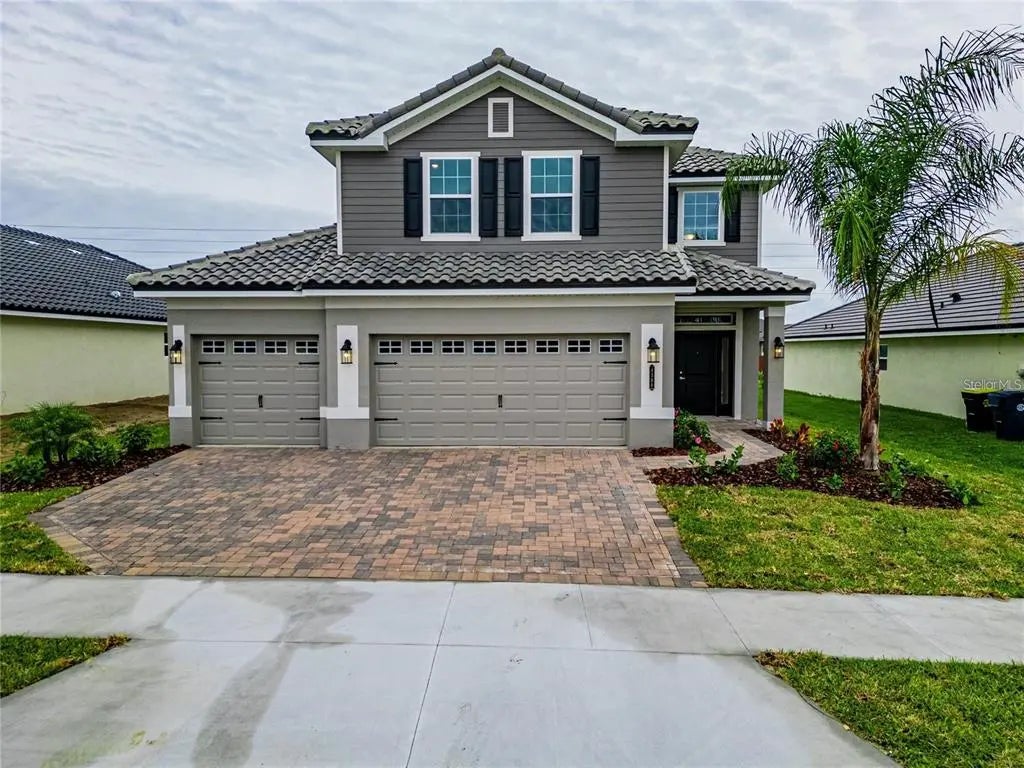 4.99 rate available. Luxury living with this 2405 sq.ft. Completed Move In Ready Home, 4 bedroom, 2.5 Bath, Loft, Oversized Primary Suite, Open Floor Plan on first floor, 3 Car Garage. With spacious entertaining space an upgraded details throughout, each inch of this home is designed with you in mind. Upon entering this home, you will be awestruck by the open concept living area, dining room and kitchen. The home has granite countertops throughout, plank tile, 5 1/4 inch baseboards, stainless Dishwasher, Range, Microwave. Half Bath on 1st Floor has a nice Pedestal Sink. On the first floor you have a nice covered and paver lanai. The primary suite bathroom features a double sink vanity with extra storage drawers, tiled separate shower with a glass door and a nice tub. There is a second bath upstairs that has the tub area tiled. The exterior boasts a tile roof and paver driveway and paver sidewalk to home. Furthermore, this tight-knit community has a gorgeous clubhouse with fitness center, pool with lake views, basketball court, tennis court, pickle ball courts, playground and even a private community boat ramp with a dock to fish off of. Don't wait - make this your home today! Photos are of a finished 2405A 3 Car Garage.