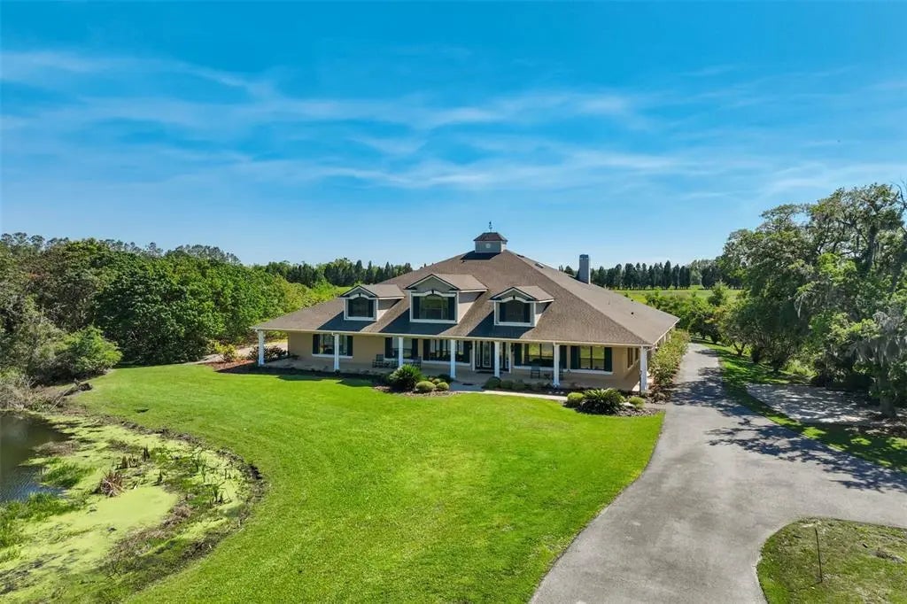 One or more photo(s) has been virtually staged. As you pass through the gates of this beautiful, 52.24-acre legacy estate, a long winding road lined with blooming azaleas, mature lychee trees, and all the natural beauty of old Florida begins to unfold itself everywhere you look. The property's focal point is a majestic, seven-acre lake, only steps from the front door. It's the ideal spot for your morning coffee, to fish the afternoon away, or to catch a stunning sunset at the end of the day. This custom, two-story 9349sf home boasts a wrap-around porch, four spacious bedrooms, and five baths. The expansive primary kitchen was created with family gatherings in mind. It includes Thermador appliances, double ovens, a warming drawer, two sinks, a large center island, illuminating lead-glass door cabinetry, plenty of bar seating, and a walk-in butler's pantry with custom features. The secondary kitchen is located right off the sunroom, it offers a gas range and wine fridge as well as easy access to the screened-in pool and spa. The oversized master bedroom has an adjacent private workout room with a wet bar and lake views. The ensuite bath has separate water closets and custom dressing rooms. Other notable features of the home include a large custom laundry, built-in vacuum system, skylight roofing, four sets of sliding pocket doors, which allow you to expand your indoor and poolside living spaces. The property also includes a 5000sf metal barn with a loft, two bays, and an additional office and a half bath, a 105kw Generac generator, a 12” 675’ deep well for farm irrigation. Mature exotic fruit trees (lychee, avocado, mango, banana & pomelo grapefruit) are a special treat. The location of this one-of-a-kind Plant City property lies conveniently off of State Road 60 between Brandon and Lakeland. It has 1,428 feet of road frontage and three ingress and egresses. It is 10 miles to Lakeland International Airport and 16 miles to either I-4 or I-75 for commutes.