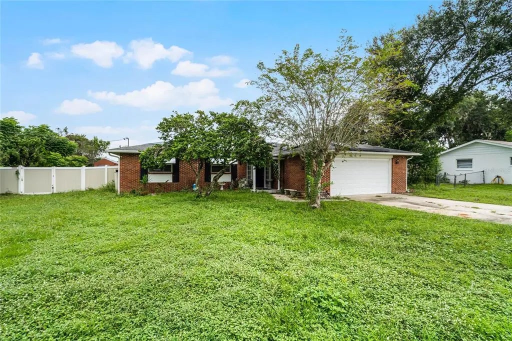 Short Sale. SHORT SALE. Needs TLC - Roof is old (no known leaks) - Solar Panel Balance is approximately $43k - Solar Panel balance to be assumed by buyer - AC is 2023 - Welcome to this delightful single-story home located in DeLand. This 3-bedroom, 2-bathroom brick house offers both charm and functionality, featuring solar panels for energy efficiency and a spacious two-car garage. The expansive front yard and long driveway provide plenty of parking and outdoor space, while the private backyard, complete with mature landscaping, offers an ideal setting for family gatherings or quiet relaxation. Inside, you’ll find a warm and inviting living space with built-in shelving and beautiful wood accents. The open layout flows seamlessly from room to room, with natural light streaming in from large windows. The kitchen boasts custom wood cabinetry and a cozy breakfast nook with built-in seating, perfect for enjoying your morning coffee with a view of the backyard. With a few personal updates, this home has incredible potential to become your dream space. Located just minutes from local parks, shopping, and schools, this home combines convenience with quiet suburban living. Don't miss the opportunity to own this gem!