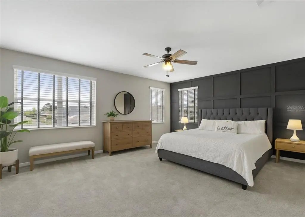 STACKED 3 CAR GARAGE! This nearly new 5-bedroom, 4.5-bath home in Red Ember offers an East facing front door and the perfect blend of luxury, function, and fun. Built in 2023 and thoughtfully upgraded throughout, every bedroom features a walk-in closet—including two in the oversized primary suite, which also boasts a custom accent wall and spa-like en suite bath. Downstairs, tile floors stretch through the main living spaces, where a cozy fireplace sets the tone for movie nights and gatherings. The gourmet kitchen includes a pot filler above the range, an oversized walk-in pantry, reverse osmosis water filtration, and easy access to the formal dining room via a butler-style passthrough. A dedicated office is located near the front entry, offering a quiet workspace away from the main living areas. Upstairs? It’s a dream. A massive game zone loft hosts a pool table and arcade-style fun, while a bonus room has been transformed into the ultimate movie theater. Enjoy smart upgrades like Solar panels and a Tesla Powerwall + solar, plantation shutters and custom blinds, ceiling fans in every room, a water softener system, overhead garage storage, and a spacious three-car garage. Red Ember is a gated community just steps from Hagerty High School and close to top-rated dining and shopping in Oviedo. This home truly has it all - space, style, sustainability, and a location that can’t be beat.