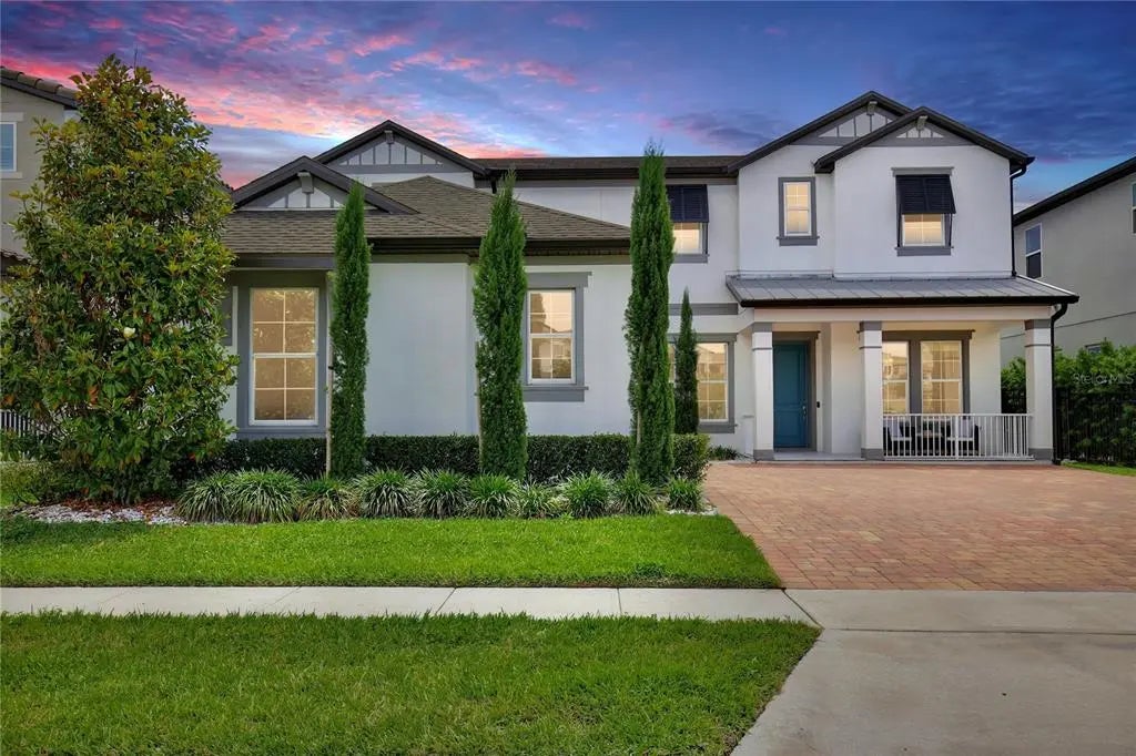 Welcome to 10139 Austrina Oak Loop! Featuring SIX BEDROOMS PLUS OFFICE and FIVE FULL BATHS, on a premium one-third acre lot overlooking the Disney preserve with a HEATED SALTWATER POOL AND SPA under a screen enclosure, this beautifully upgraded home is 4,500 square feet of understated elegance. With no front neighbor, step back to take in the impressive façade, paver drive and custom landscaping. Across the foyer from the formal dining room, French doors lead to the private office / seventh bedroom with an adjoining full bath. The gourmet kitchen and butler’s pantry feature quartz countertops, stainless appliances including double ovens, 42-inch cabinets with bonus overhead cabinets, an oversized island, and a walk-in pantry, all under the glow of custom light fixtures. A triple-pane sliding door with motorized blinds overlooks the pool and illuminates the family room, with ten-foot ceilings and luxury vinyl plank floor. Around the corner is the first floor Owner’s Suite, with tray ceiling and separate pool access, plus a large Owner’s Bath with two quartz vanities, soaking tub with separate shower and a huge walk-in closet. Upstairs, a wet bar with granite counter opens into a spacious loft with separate bonus room, adjacent to an en suite bedroom with full bath and walk-in closet. A tour of the large secondary bedrooms reveals plentiful natural light, walk-in closets, and views of the pool and wooded area beyond. Outside, a paver deck surrounds the heated saltwater pool and spa – all enclosed in an oversized screen enclosure offering uninterrupted views of nature by day and Disney fireworks by night. This immaculately maintained is completely move-in ready with custom window treatments, fully fenced lot, rain gutters and much more. This home is walking distance to top rated schools, retail, and dining at The Mark, and offers easy access to area attractions and the FL-429 corridor. Contact us now to schedule a private showing of this beautiful home!