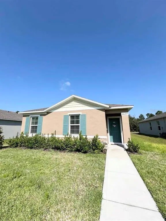 This single-family home, constructed with solid concrete blocks, features 3 bedrooms and 2 bathrooms. Upon entering the foyer, you're welcomed into an open-concept living space. The kitchen, which overlooks the dining and living rooms, also offers a view of the expansive outdoor living area. It boasts an island with bar seating, ample cabinetry with stunning granite countertops, and stainless steel appliances, making it perfect for entertaining. The primary bedroom, located off the living space, includes an en suite bathroom with a double vanity and a spacious walk-in closet for plenty of storage. At the front of the home, you'll find two additional bedrooms, a full bath, a coat closet, a linen closet, and a laundry room. The community features a large pool, playground, and gym.