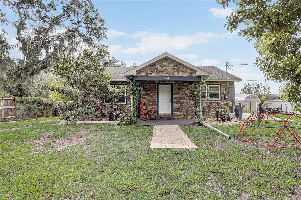 1.67 Acres of Lakefront Living! Welcome home to this lovingly cared for & extensively updated 2bd/1ba cottage on Bluff Lake. Step inside to discover an open and inviting floorplan with LVP flooring seamlessly connecting the main living spaces. Updated kitchen with granite counters & SS appliances. Two generously sized bedrooms with original hardwood floors and shared updated bathroom with tile shower/tub combo. Enjoy beautiful sunrises from your partially enclosed/covered paver patio. Stone exterior, covered front porch, additional concrete patio for extra outdoor living, large shed and established fruit trees (loquat, mulberry and pineapple). The lot is fully fenced with a security gate at the street. Roof 2019 with new gutters and soffits, HVAC with Reme Halo Air Purification System 2018, Water Heater 2017, New Septic System & drain field 2023, Reinforced foundation with fully transferable warranty. This home offers an excellent location with easy access to shopping, dining and more. Don't wait! Schedule your private tour today! Mortgage savings may be available for buyers of this listing, ask Listing Agent for details!