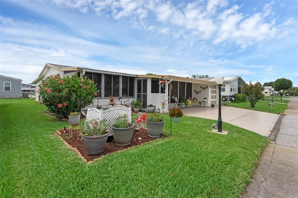 Welcome to effortless living in this charming, move-in-ready home in a vibrant 55+ resort community! With a new roof, 2016 AC, updated bathrooms, and a front screened lanai bathed in natural light, this home offers comfort and style. This is one of the largest floor plans you will find. The spacious, open floor plan is perfect for entertaining, flowing seamlessly from the living room to the dining area and kitchen. The kitchen features a large 9' custom pantry. A large bonus space provides a 3rd bedroom option and ample storage. Plenty of rooms and storage throughout. Washer and dryer hookups are located inside the home and in the garage. The partially furnished home includes appliances, so moving in is a breeze. Embrace the active lifestyle this gated community offers, with it's own pub, golf, boating, fishing, shuffle board, hot tub, swimming, pickleball, and social gatherings galore! Plus, enjoy the convenience of HOA coverage that includes cable and internet. Just a short drive to Disney, Legoland, and the coasts. Call and request your showing today! 55+ community