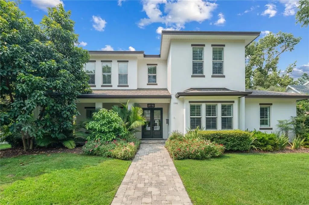 Under contract-accepting backup offers. Discover luxury living in this custom Austin Homes 5 bedroom, 5 and one half bath transitional style home that offers a blend of modern and traditional elements coupled with a highly desirable Winter Park location. This residence boasts a sought-after open floor plan with 12-foot ceilings, wide plank wood flooring and truly exceptional detailed finishes throughout. You will feel instantly at home as you pass through the fully enclosed front yard and enter through the double door entrance from the covered wrap-around front porch. The open-concept design seamlessly connect the dining room and family rooms as you make your way to the kitchen area complete with Wolf & Sub-Zero stainless-steel appliances, double islands, Wellborn custom cabinetry, and private Butler's Pantry with new washer/dryer. The gourmet kitchen opens to the spacious family room where you will find a built-in fireplace with custom millwork, recessed lighting, and beautiful French doors that open fully to the outside entertainment/living area. The split floor plan is perfect for the family and as you find your way throughout the remainder of the home, you will be impressed by the designer window treatments, plantation shutters, built-in speaker system, high-quality upgraded light fixtures, and private pool bath. The main floor includes a spacious primary retreat with a large walk-in closet and private French doors leading to the pool area. The spa-like bathroom includes a stand-along soaking tub, dual sink with stone counters and generous walk-in shower. The formal dining room and en-suite guest bedroom complete the first level. Upstairs are 3 spacious bedroom suites with full baths, a generous bonus/media room with built-in desk, and a second upstairs laundry room with hook ups. You will enjoy Florida living while relaxing on your covered lanai complete with retractable screens and summer kitchen overlooking the saltwater sparkling pool/spa with new pool heater and fully enclosed kid friendly yard. Upgrades include: Control 4, new electronic driveway entry gate, whole house interior and exterior painting, Jeld Wen solid core interior doors, hardwood floors throughout the first floor & bonus room, custom closet systems in all closets, rare 3-car garage, vinyl insulated windows, core fill & block walls, high density spray foam insulation in ceilings, R13 in frame walls, Carrier 15-Seer AC dual systems with UV filtration, and two Rinnai gas tankless water heaters, whole house water filtration. This pristine residence is situated on an oversized corner lot and it truly timeless, move-in ready, and only ½ mile to the Winter Park Raquet Club and 2 miles to famed Park Avenue to enjoy incredible dining and boutique shopping. Call now for your private tour!