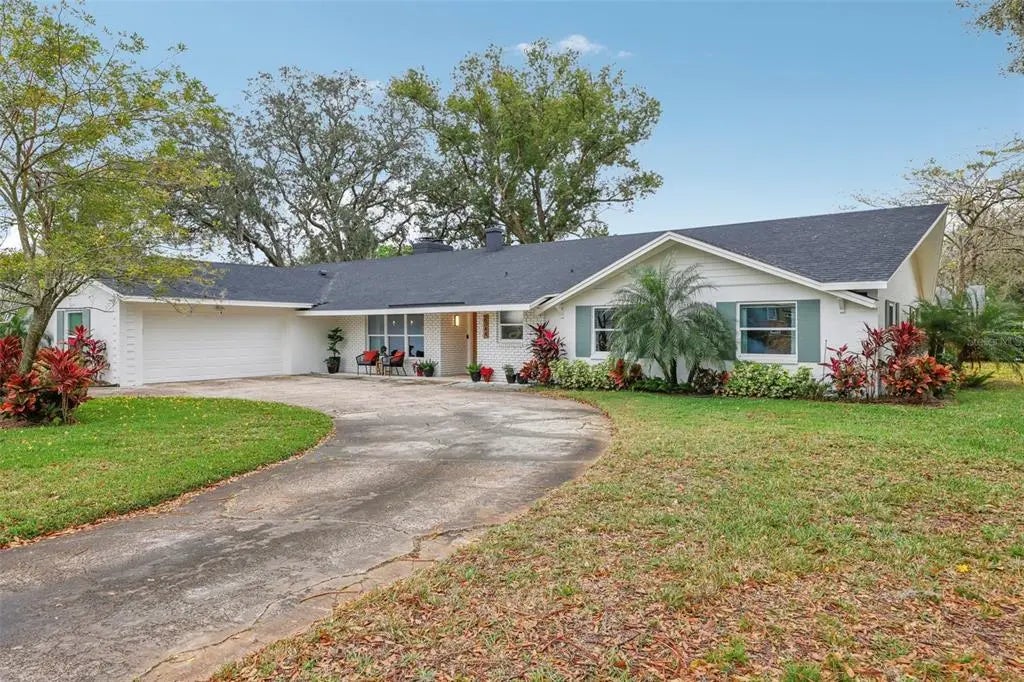 home, this sprawling 2,649-square-foot ranch-style home has been tastefully and thoughtfully updated, offering a seamless blend of mid-century charm and modern convenience. Situated on a beautifully landscaped CORNER .31 ACRE LOT, this property boasts a functional CIRCULAR DRIVEWAY and 2 CAR SIDE ENTRY GARAGE. Step inside and be captivated by the natural light that pours through the abundance of windows. The large dining room at the front of the home offers views of the front yard, setting the stage for memorable gatherings. The open-concept kitchen has been updated with GRANITE countertops, MODERN cabinets, and REFINISHED TERRAZZO flooring, which flows effortlessly into the inviting family room. From here, sliding doors lead to a spacious screened patio and a FULLY ENCLOSED backyard. Walk through the family room into the living area that features a DOUBLE SIDED FIREPLACE and backyard views. The primary suite features dual closets, backyard views, and an updated en-suite bathroom with a walk-in shower. The secondary bedrooms are generously sized and share a stylish bathroom complete with a double vanity and a tub/shower combination. Additionally, the OVERSIZED INDOOR LAUNDRY ROOM, which once served as the builder's office, offers ample space and includes a convenient nearby half-bath. Significant UPDATES include a BRAND NEW ROOF currently being installed, modern WINDOWS, updated ELECTRICAL AND PLUMBING systems, new interior and exterior PAINT, upgraded ATTIC INSULATION, beautifully refinished terrazzo floors, well for irrigation, A/C UNIT 2019, and WATER HEATER 2017.