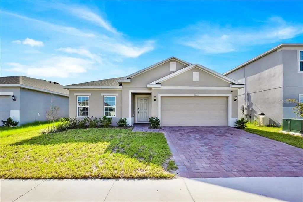 Welcome to 3653 Yarian Dr — a stylish 4-bedroom, 2-bath home built in 2023 and located in the desirable Hammock Reserve community of Haines City. This move-in-ready residence offers a spacious open-concept layout with high ceilings, natural light, and a modern kitchen featuring stainless steel appliances, solid surface counters, and a large center island. The private primary suite includes a walk-in closet and a spa-like en-suite with dual vanities and an oversized shower. Additional highlights include ceramic tile in main areas, carpet in bedrooms, a 2-car garage, and a covered rear lanai. Hammock Reserve offers resort-style amenities including a community pool, playground, and walking paths. Conveniently located near shopping, dining, medical facilities, and just minutes from Disney and LEGOLAND.