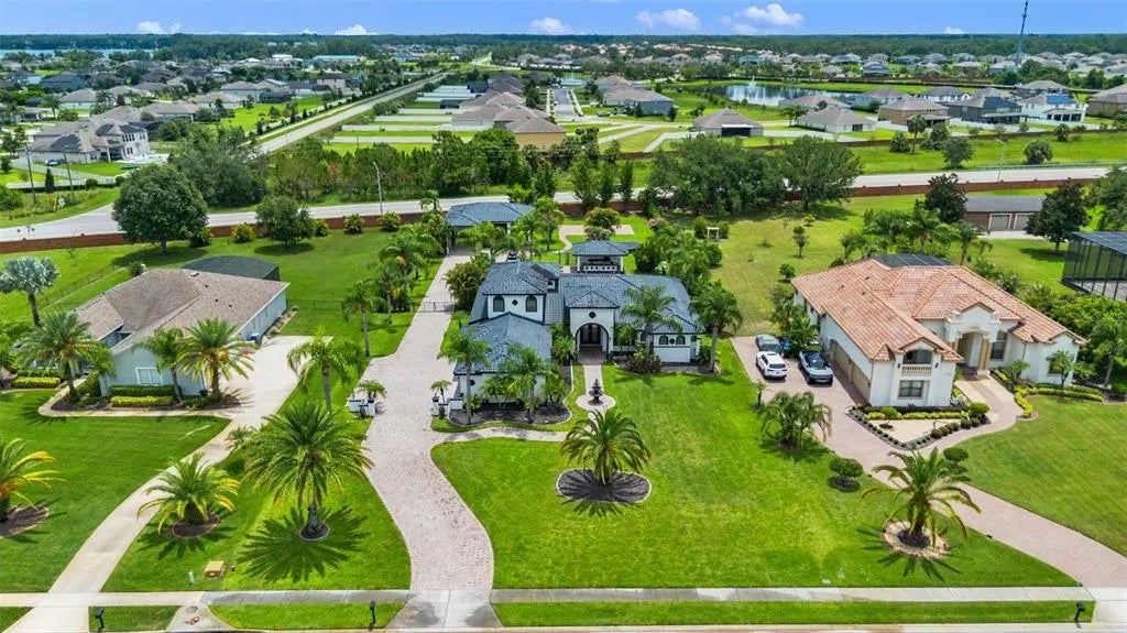 Under contract-accepting backup offers. Nestled on a sprawling one-acre lot, this custom-built estate offers over 4,000 square feet of refined living space, featuring 5 spacious bedrooms, 4 full bathrooms, and an attached 3-car garage. Enhancing the property’s appeal is a separate 5-car garage/workshop with an additional carport—ideal for collectors, hobbyists, or entrepreneurs. Designed with elegance and functionality in mind, the home boasts soaring ceilings, luxury flooring, abundant natural light, and a desirable open-concept, split-bedroom floor plan. At the heart of the home lies a chef’s kitchen, grand in scale and perfectly appointed with extensive cabinetry, granite countertops, stainless steel appliances, and captivating views of the pool. The expansive family room offers a cozy fireplace, ideal for gathering and entertaining. The primary suite is a private retreat, measuring an impressive 27x16 feet, and includes a sitting area, fireplace, walk-in closet, and a luxurious en-suite bath with soaking tub, dual vanities, and a spacious walk-in shower with dual shower heads. The main level also features four additional bedrooms and three full bathrooms, including a secondary owner’s suite—perfect for guests or multi-generational living. Upstairs, a generously sized loft provides flexible space for a game room, home theater, playroom, or studio. Step outside and experience resort-style living with an oversized covered lanai, sparkling pool and spa, and a fully equipped gazebo with an outdoor kitchen—ideal for entertaining year-round. The backyard also includes a half basketball court, expansive green space, and the impressive workshop, complete with a carport and endless potential for boat storage, recreational vehicles, or home-based projects. This home combines luxury, versatility, and value—offering an extraordinary lifestyle at an exceptional price. This home is nestled in a highly sought after gated community, known for its large lots and private lake, community amenities and amazing location. It's also located just a short drive from the magic of Disney, the vibrant atmosphere of International Drive, and premier shopping at Millennia Mall, this home offers convenience paired with quality. Discover the perfect blend of sophistication and functionality in this meticulously crafted home, offering both comfort and style. Schedule a private viewing today.