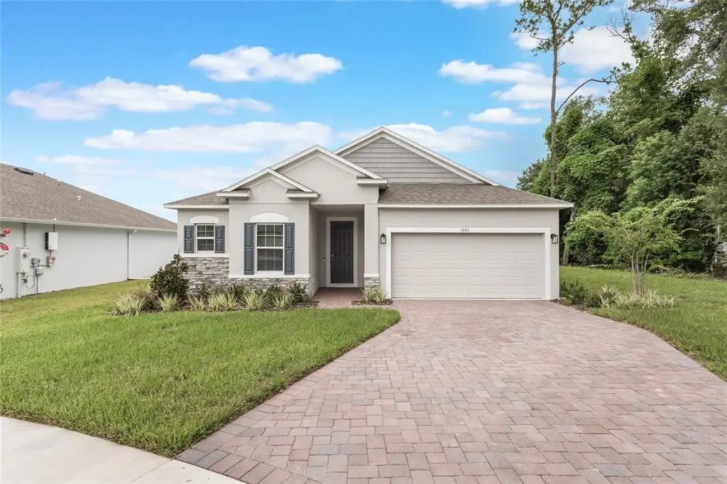 Move-In Ready 2025 Maronda Home - Drexel Model located on a beautiful cul-de-sac lot in a private, one entrance community. Step inside the foyer and follow the hallway past the second and third bedrooms to the open living area. The island kitchen includes stainless steel appliances, double ovens, pantry, an eating bar, perfect for casual meals and the breakfast nook offers a great start to your day. The primary suite is a true retreat, boasting a luxurious bathroom and spacious walk-in closet. This 3 BEDROOM, 2 BATHROOM home is also complemented by a FLEXIBLE SPACE that can serve as an OFFICE, PLAYROOM or whatever fits your lifestyle, a COVERED PATIO, FENCED-IN BACKYARD, and a 2 CAR GARAGE. UPGRADES: Vinyl Fence, Crown Molding throughout main area and Primary Bedroom, TILE Flooring throughout entire home, Quartz Countertops in Kitchen and Bathrooms and Smart Home Package (one app to power your entire home). Just 3 miles away from the historic downtown Deland, where you can enjoy food, shopping and fun. Daytona, New Smyrna and Ormond Beach – all within a 40-minute drive. St. John’s Marina in Deland is a local haven for outdoor fun with boat access and a large RV campground. Stetson University, a nationally ranked college, is in Central Deland. Local restaurants to enjoy, The Table Restaurant, Half Wall Deland, Cress Restaurant, the Deland Stockyard or The Parched Oak!