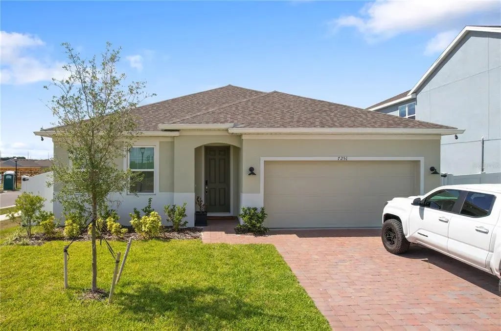 Under contract-accepting backup offers. Welcome to 7251 Rolling Leaf Road—a beautifully maintained 4-bedroom, 2-bathroom Selby Flex Model built in 2024 by Landsea Homes, offering almost 1800 square feet of modern living space in the highly desirable Trinity Lakes community. This charming home sits proudly on a corner lot and boasts a fully fenced-in yard—perfect for outdoor entertaining, pets, or simply enjoying your private oasis. Step inside to discover elegant ceramic tile flooring flowing throughout the main living areas, complemented by plush neutral carpeting in all bedrooms for ultimate comfort. The open-concept kitchen is a chef’s dream, featuring gleaming granite countertops, stainless steel appliances, a large center island ideal for gatherings, and a walk-in pantry offering abundant storage. The spacious primary suite includes a luxurious en-suite bathroom with dual granite vanities, a walk-in shower, and a large walk-in closet. Bedrooms 2 through 4 are generously sized and share a beautifully appointed bathroom with dual sinks and granite counters. Residents of Trinity Lakes enjoy a wide array of community amenities including a resort-style pool with splash pad, clubhouse with state-of-the-art fitness center, soccer fields, playground, and a dog park. With its modern finishes, prime location, and unbeatable neighborhood features, this home offers the perfect blend of comfort, convenience, and community. Home is still under the builder warranty till December 2025. Don't miss your opportunity to live in one of the area's most sought-after neighborhoods!