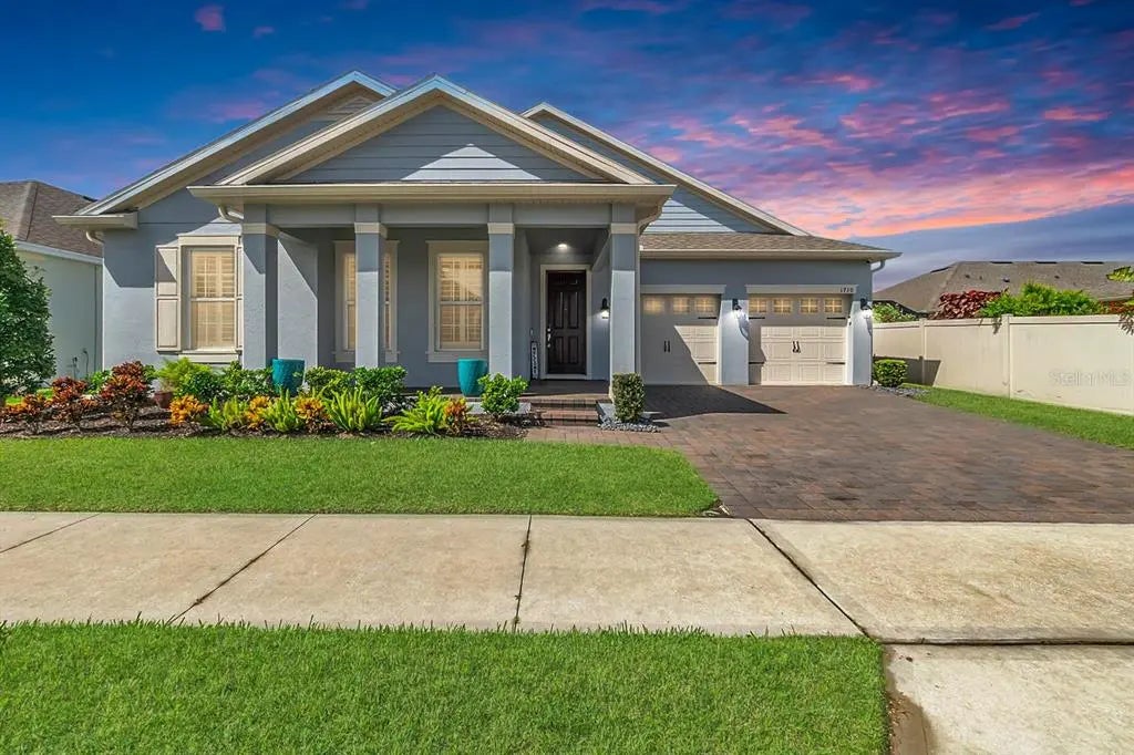 Welcome to 1710 Pasture Loop, Oviedo, FL — a stunning residence in the exclusive gated community of Parkdale Place. This newer-built home offers a perfect blend of timeless style, modern comfort, and thoughtful design, making it a true standout in one of Oviedo’s most desirable neighborhoods. From the moment you arrive, the home makes a striking impression. A brick paver driveway, lush landscaping, and a wrap-around covered front porch create a warm and inviting curb appeal. Inside, you are greeted by a soaring foyer filled with natural light, setting the stage for the open and functional layout. With luxury wood plank tile floors throughout and no carpet, the home showcases both sophistication and easy maintenance. The floor plan is as practical as it is elegant. This home offers three spacious bedrooms, two and a half bathrooms, and a versatile study/den perfect for work, reading, or creative pursuits. Two bedrooms share a beautifully appointed full bath with dual sinks and granite countertops, while the expansive primary suite serves as a private retreat with its large walk-in closet featuring custom built-in, spa-like bathroom, dual vanities, soaking tub, and walk-in shower. An oversized laundry room with sink adds everyday convenience, and the fenced backyard provides privacy and peace of mind. At the heart of the home is the gourmet kitchen, designed for both everyday living and entertaining. This chef-inspired space features KitchenAid black stainless-steel appliances, a natural gas range, 42” custom cabinetry, granite countertops, and designer herringbone tile backsplash. The oversized island with seating anchors the room, while a coffee bar with beverage refrigerator adds both style and function. Flowing seamlessly from the kitchen, the open living and dining spaces are ideal for gatherings of any size. Plantation shutters and elegant finishes add charm, while large windows frame serene views of the backyard. Step outside to the screen-enclosed lanai with brick pavers, where trees and landscaping create a private retreat perfect for relaxing, dining al fresco, or planning your future pool. Additional highlights include a three-car tandem garage, indoor laundry with washer and dryer included, double pane windows, tankless gas water heater, rain gutters, and attention to detail throughout. Location completes the package. Parkdale Place offers top-rated Seminole County schools and is just minutes from Oviedo on the Park, Winter Springs Village, UCF, and endless shopping and dining. With SR-417 nearby, commuting to Downtown Orlando, Disney, Universal, or Florida’s beautiful beaches is a breeze. 1710 Pasture Loop isn’t just a house—it’s a lifestyle. With elegant design, modern upgrades, and a prime Oviedo location, this home is ready to impress. Schedule your private showing today and see why this property is one of Parkdale Place’s finest.