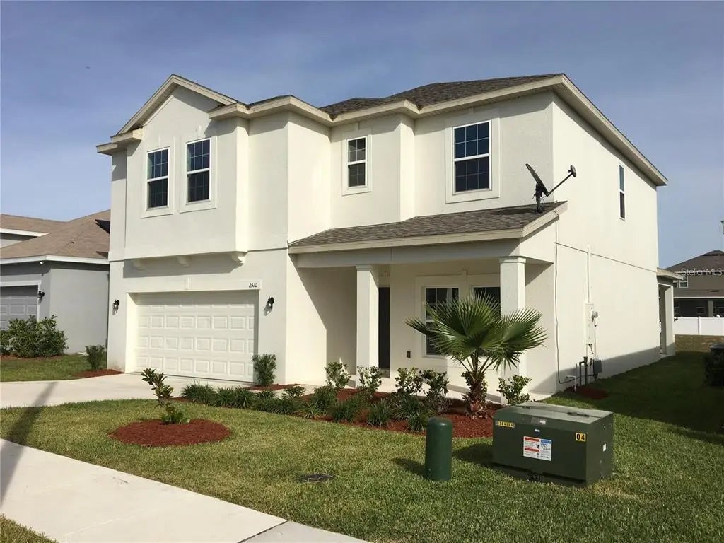Welcome to this beautiful 4-bedroom (1 downstairs and 3 upstairs), 3-bath single-family home located in the desirable area of Haines City! This spacious rental features an open-concept living area with abundant natural light, a modern kitchen with stainless steel appliances and a large island, perfect for entertaining. The primary suite offers a walk-in closet and a private en-suite bathroom. Enjoy Florida living on the covered back patio overlooking a generous backyard. Conveniently located near shopping, restaurants, schools, and major highways for easy commuting to Orlando, Davenport, and surrounding areas, just 35 minutes from Disney. Move-in ready and impeccably maintained — this home won’t last long!