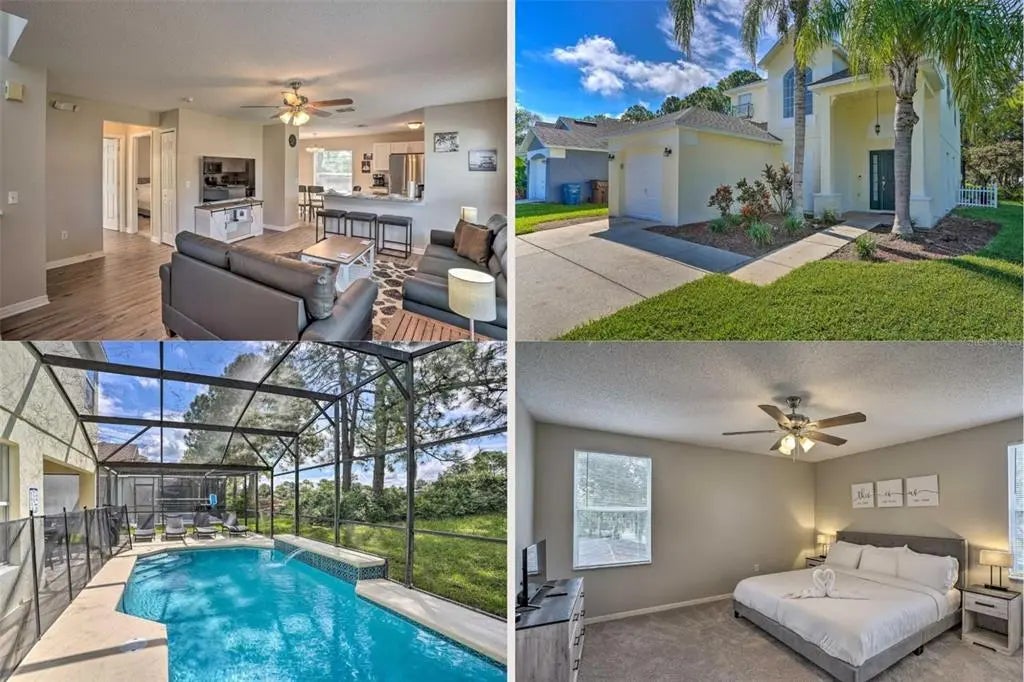 Welcome to a home that feels like a vacation! This 4 bedroom, 2 bath home is nestled in the Southern Dunes Golf Community. You'll find yourself close to parks, Central Florida cities, culture, and history. The property has a spacious Guest Master on the first floor connecting to a full bathroom which also has a sliding door to the screened in pool overlooking the pool and golf course. Upstairs you have two additional bedrooms with plenty of space and sleeping arrangements, a working station for remote work or for the kids to do homework, and a spacious Master Bedroom overlooking the Golf Course. This corner unit lot has convenience close to shops, Florida attractions, as well as space, amenities, and a cozy set up for the perfect retreat. Property provides unique leasing arrangement of a year or less, see how we can accommodate your next stay in Central Florida!