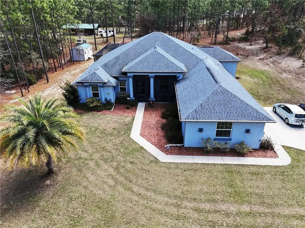 Discover the perfect blend of luxury and country charm with this stunning Equestrian designed Sweetwater-built custom pool home set on 3.78 acres of serene land. Step outside to your 24x46 horse barn including 2 stalls with a feed and storage area, plus 3 fenced paddocks, and large tack room —a dream come true for any equestrian enthusiast. This 4Br/3Ba home is designed for both comfort and style, this open-concept, split-floor plan features elegant tile flooring throughout, a gourmet kitchen with a massive island, rich wood cabinetry, granite countertops, and stainless steel appliances. Enjoy the convenience of a dedicated office/den, spacious bedrooms, and a well-equipped laundry room with cabinetry and a tub. The 4th bedroom boasts an ensuite bathroom, creating the perfect mother-in-law suite for added privacy. Prime Location! Just a few blocks from the Pine Ridge Community Center and Equestrian Stables, you'll have access to tennis, pickleball, an RC plane pad, a dog park, and a playground. Whether you're unwinding by the screened-in pool or exploring the scenic riding trails, this property offers the ultimate blend of relaxation and recreation. A rare gem—schedule a showing today!