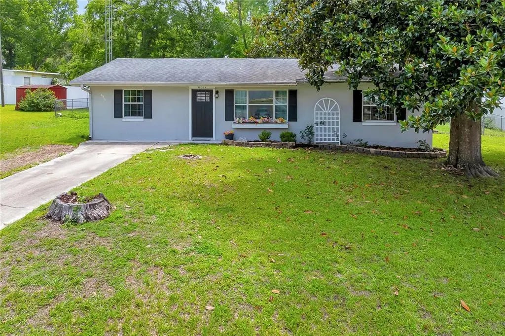 Under contract-accepting backup offers. Charming, immaculate home on a quaint street is ideal for the picky buyer! Full of upgrades, fitting the needs of a first home, a downsize home or even offers an in-law type of setting for roommates. Upgrades galore consisting of granite counters in kitchen and both baths, tiled walls and crisp wood shelves in kitchen, laminate wood and tile floors, open plan offering a large living room, split plan with large primary bedroom, walk-in closets, stainless appliances, and a LG washer and dryer. An inside laundry room with door to back fenced yard. This little haven is conveniently between Ocala and Belleview in a fantastic location on a quiet cozy street, you can assuredly call this home. Enjoy having a fenced play yard for your children, grandchildren or dogs, and the shed stays. New roof 2019, new HVAC 2022, freshly painted inside with tasteful decor. Look and see if this fits your needs to call this adorable home your home.