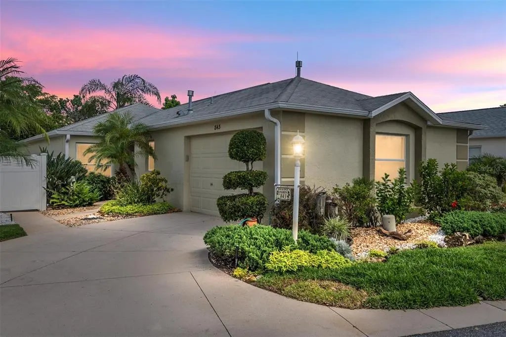 One or more photo(s) has been virtually staged. *NEW IMPROVED PRICE* Check out the prime LOCATION just outside SUMTER LANDING and a BRAND NEW ROOF! Shopping and entertainment a golf cart ride away. This FOXGLOVE Courtyard Villa is priced to sell and move in ready. Inside this stunning villa, you'll notice an elegant kitchen featuring a NEW REFRIGERATOR, NEW DISHWASHER, microwave and a GAS STOVE! The open concept design flows into a spacious living area that seamlessly connects to a private screened-in lanai, perfect for relaxing and soaking in the views of the PRIVATE and fully fenced lush back and side yard with sprinkler system. The primary suite is a tranquil retreat with NEW carpet, ceiling fan, private lanai access, a large closet and an En-suite bathroom with walk-in shower. The guest accommodations include 2 more bedrooms, with easy care tile-- with a second full bath featuring tub/shower combo. Pocket door makes this a great space for visitors to have privacy. The other bedroom can be a home office or hobby room. Indoor laundry room is convenient and equipped with a NEW WASHER, dryer and utility sink. BRAND NEW HVAC in 2025 will keep you cool and comfortable. Many rooms have been freshly painted a soft soothing blue, ready to decorate to suit. The garage has room for a car as well as that golf cart! And check out the newly refinished garage floor and wall paint! With an UNBEATABLE LOCATION like this---you're within minutes to the Virginia Trace pool, Canal Street Rec Center, Lake Miona Rec Center and Lake Sumter Landing, where nightly entertainment, shopping, dining and groceries await. Schedule your private showing today, possibilities for this Villa are endless.
