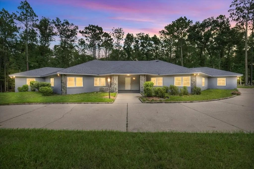One or more photo(s) has been virtually staged. Escape to the end of a quiet cul-de-sac, on 2.36 private acres and you will find a one-of-a-kind custom-built home, purposefully designed for accessibility, comfort, and creative living. This unique home is handicap ready for current or future use combining barrier-free functionality with eclectic charm, offering incredible versatility for its next owner. Inside, the galley kitchen is a chef’s dream, featuring two commercial-grade Sub-Zero refrigerators, double built-in ovens, two butler’s pantries, and an abundance of storage and prep space. The layout includes two spacious primary suites, a full-sized library, and an oversized office with extensive built-in filing cabinets and workstations—ideal for a work home office or creative studio. Did I mention this home has 5695 sq ft under air. The home also includes an interior efficiency apartment, perfect for guests or live-in care. The oversized 28’ x 27’ garage offers ample storage, with an attached air-conditioned workshop, and two additional detached storage buildings with roll-up doors and electricity—ideal for equipment or hobbies. Recently updated with a brand-new roof (house and storage buildings), all-new windows with custom interior casements, and fresh exterior paint, the big-ticket items are already taken care of, giving you a head start in making this incredible home your own. The home is equipped with two Lennox 5-ton A/C units one includes an Aquefier system which turns the hot steam into hot water along with two hot water heaters and two electric panels. There is also a Generac 20 KW whole home generator with a 250 gallon underground propane tank. This property offers boundless potential—perfect for multi-generational living, maybe your private sound or photo studio, or simply a private creative retreat. Let your imagination roam—this home was built with intention and awaits your next vision. The outdoor space is vast and peaceful with abundant wildlife and a property that is full of mature trees and beautiful landscape. Located in The Forest of Rainbow Springs, residents enjoy some pretty sweet perks for a very low yearly HOA fee. They include community swimming pool, clubhouse, bocce ball, pickle ball, tennis, basketball, driving range, restaurant, disc golf, walking trail and access to your own private 3-acre residents park which is just a 1500-foot peaceful kayak or canoe paddle from the first magnitude Rainbow River State Park head spring. This exclusive community river park has 2 large pavilions, barbecue grills, segregated bathrooms, outdoor showers, private swimming area, kayak launch and supervised security for safety and peace of mind. Dunnellon’s Rainbow Springs is a rare gem. You will also be able to experience world class golf just next door at Juliette Falls Country Club. This ideal location places you at the doorstep of small town living at its finest in addition to being close to Ocala, Gainesville and vacation attractions found in nearby Tampa and Orlando. Don't miss your opportunity to visit this lovely home and property.