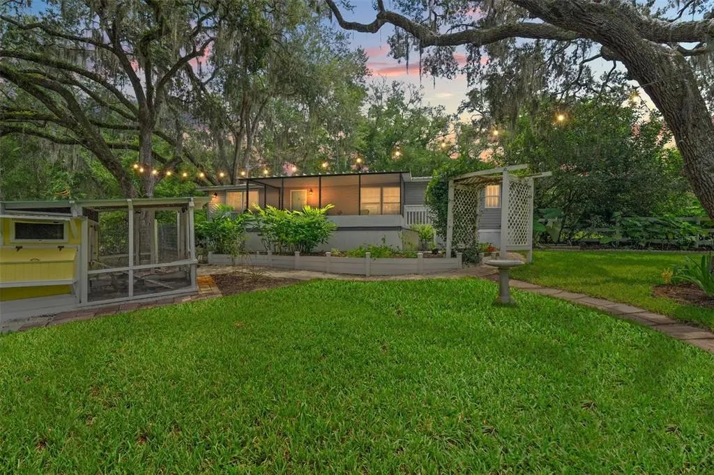 Tucked away on just over 4.5 acres of peaceful, park-like land, this fully renovated 2-bedroom, 2-bath retreat blends modern comfort with the charm of a true homestead. Backing directly to 132 acres of Central Ridge Park and only steps from the 46-mile Withlacoochee State Trail, it’s the perfect setting for those who love the outdoors, dream of hobby farming, or simply crave a slower pace of life. Inside, the home feels brand new thanks to a top-to-bottom renovation — from the plumbing, electrical, insulation, and drywall to the custom finishes that add warmth and character. The kitchen is designed for both function and hospitality, featuring GE Profile appliances, a GE Monogram double oven, custom cabinetry, and a spacious wood-top island with clever storage touches like a built-in knife drawer. A walk-in pantry, cozy electric fireplace with a live-edge mantle, and even surround sound over the soaker tub make every day feel like a treat. Step outside and the property comes alive with endless possibilities. A 20x40 irrigated and fenced organic garden is ready for your vegetables and herbs, while the chicken suite with cameras and an automatic electric door makes tending to your flock a breeze. Towering granddaddy oaks and fruit trees provide shade and beauty, while the above-ground pool with turf surround and a screened-in outdoor hangout provide the perfect place to relax any day of the week. For projects, storage, or future plans, you’ll appreciate the 16x32 shed with water and electric, RV/boat slab, barn or storage slab, and even a shooting range. An electric gated entry adds both privacy and convenience. The innovative ProVista lawn keeps the grounds looking lush with minimal effort, thanks to built-in weed control. With room for an additional homesite, the possibilities here are endless. Whether you’re dreaming of a thriving garden, collecting fresh eggs each morning, entertaining friends under the stars, or simply soaking up the peace of Florida’s natural beauty, this homestead offers a lifestyle that’s both laid-back and deeply rewarding — all delivered in style. FURNISHINGS OPTIONAL.