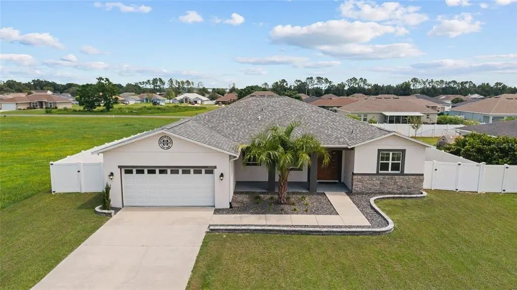 PRICED TO SELL! Beautiful 4/3/2 home in Diamond Ridge! 2024 ROOF & 2025 AC! This 2019 built concrete block home has great curb appeal with paver curbing, a covered entryway and double front door. SPACIOUS home with 2232 ft living space! Lots of naturall light! High ceilings and wood plank ceramic tile floors in living areas. OPEN FLOOR PLAN. The kitchen features an island/breakfast bar, SS appliances, backsplash, plenty of cabinets, granite counters, and a walk-in pantry/storage closet. The oversized primary suite has double door entry, lanai access, TWO closets, and an en suite with tiled walk-in shower, garden tub, dual sinks, granite counters, and water closet. SPLIT BEDROOM PLAN. There is an IN-LAW suite with bedroom and private bathroom. Inside laundry room has a barn door. Lanai overlooks large back yard with privacy fence and a paver fire pit area. Great house for entertaining family and friends inside and outside! NO HOA. This home is within walking distance to the Belleview Sportsplex (playground, baseball, basketball, football, soccer, tennis) with shopping, dining, and medical nearby. Convenient location between Ocala and the Villages!