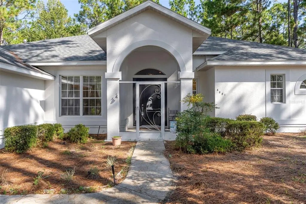 PINE RIDGE ESTATES - 3-bedroom, with 4th bedroom or bonus room, 3.5-baths and office with 2,609 sq. ft. of comfortable living space, nestled on nearly 1.5 acres with pool. The heart of the home is the kitchen, complete with a large island, large walk-in pantry with an extra gas range perfect for holiday dinners—built-in shelving, freezer, plus washer and dryer. The spacious primary suite offers a relaxing retreat with a walk-in closet, dual sinks, soaking tub, and separate shower. An oversized bonus room provides endless possibilities—use it as a 4th bedroom, home office, gym, or craft space. The home’s thoughtful layout is designed for versatility and everyday living. Step outside to your own private oasis—a sparkling pool, solar heated with a covered lanai overlooking the serene backyard, where you can relax and enjoy nature at its best. NEW ROOF IN 2021 AND NEW A/C IN 2018. FRESHLY PAINTED ON THE EXTERIOR. This home is spacious and built for family and entertaining. The interior needs some cosmetic improvements, such as painting and flooring. Surrounded by beautiful homes, this may be where you will want to call home as well. With a 2-car garage and plenty of usable space, this home is ready to meet all your lifestyle needs.